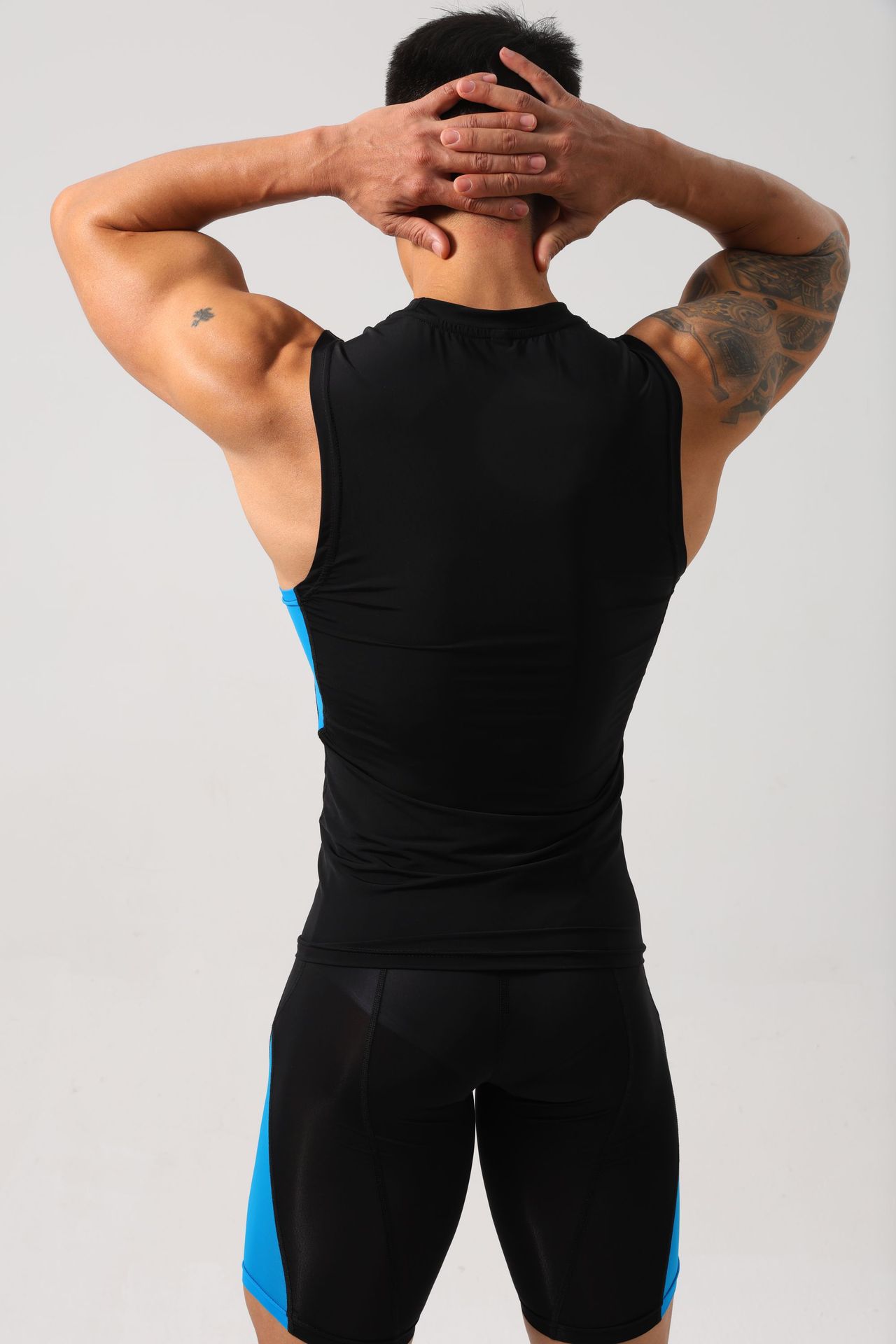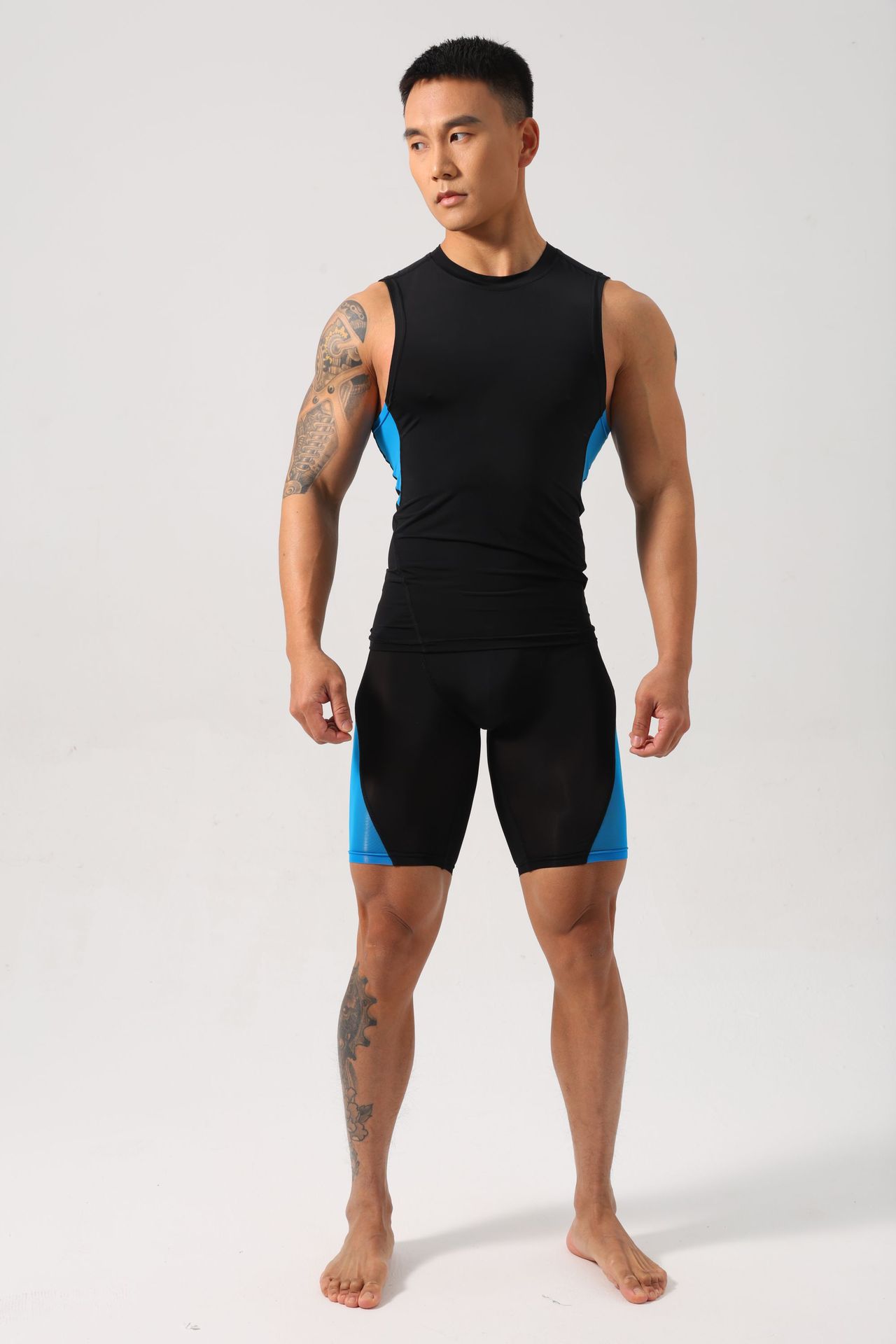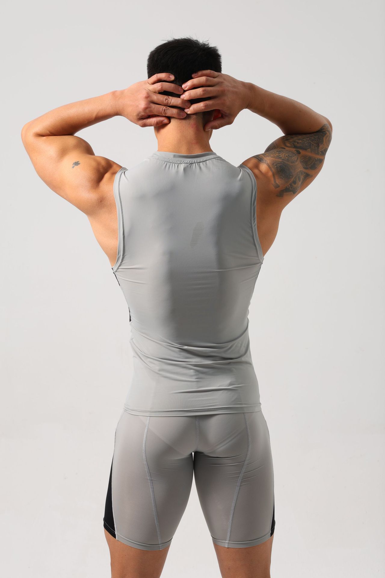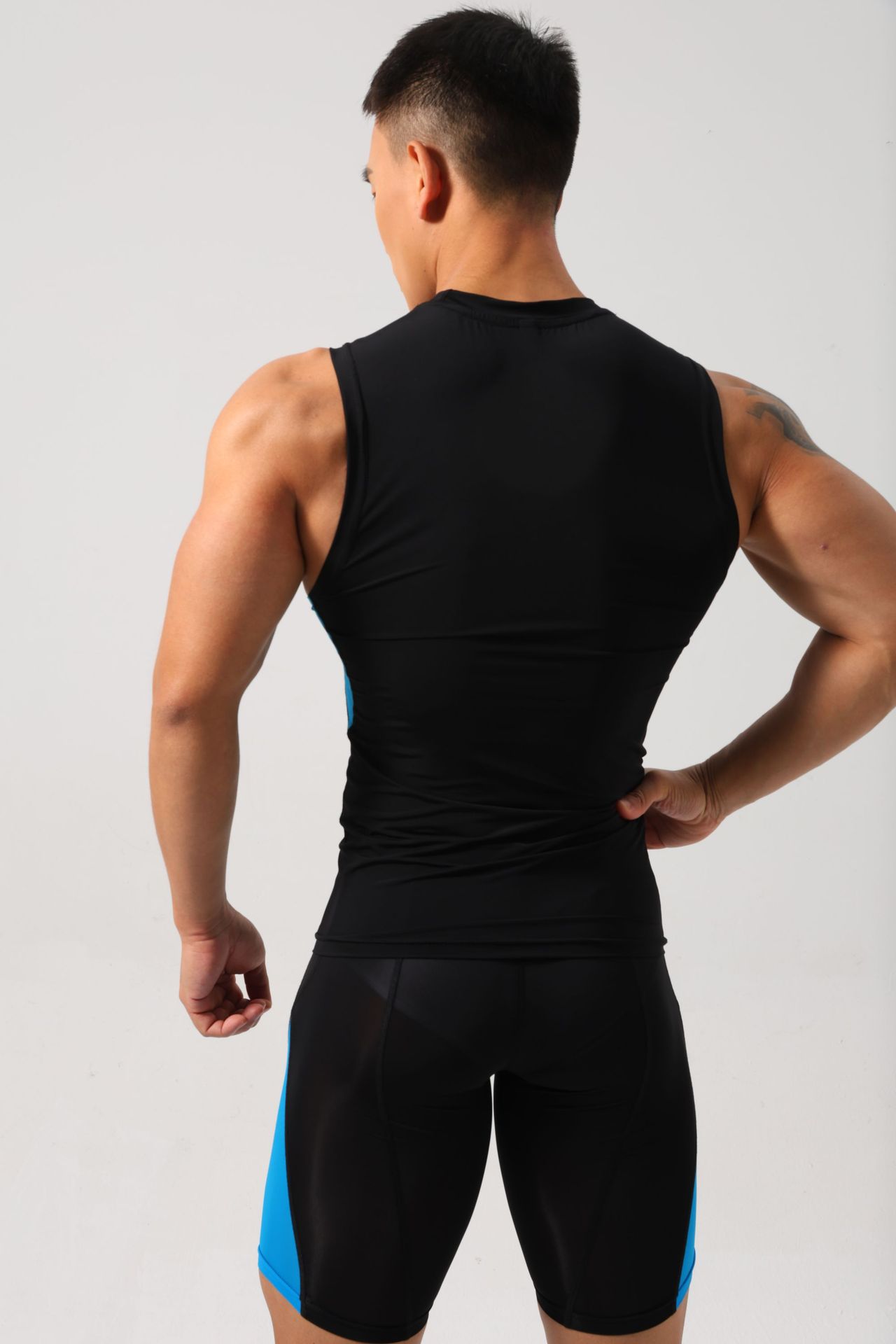 ランニング速乾弾力タイトなスポーツベスト男性夏ノースリーブキャンプフィットネストトレーニング服
