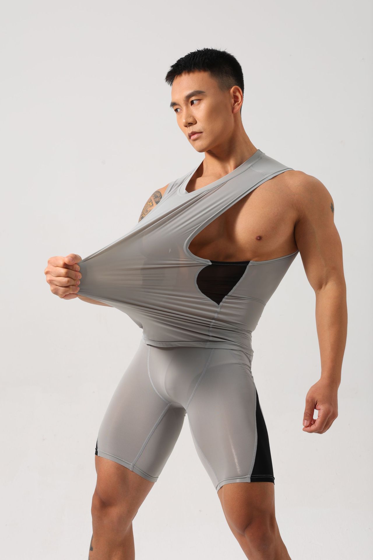 Gymbull氷糸裸感フィットネスベスト男性速乾超弾軽薄レオタード