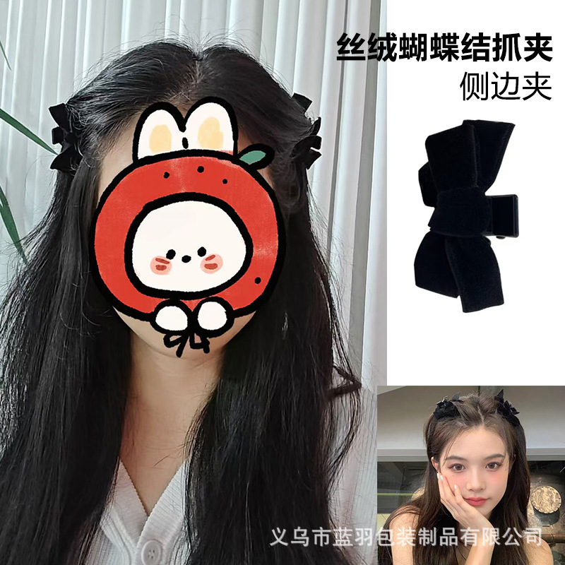 蝶結びのヘアピンの髪飾り王心凌と秋冬のベルベットのクリップの小さい前髪のクリップの甘い少女