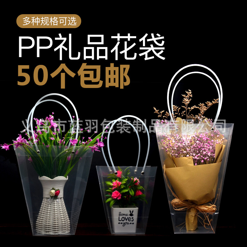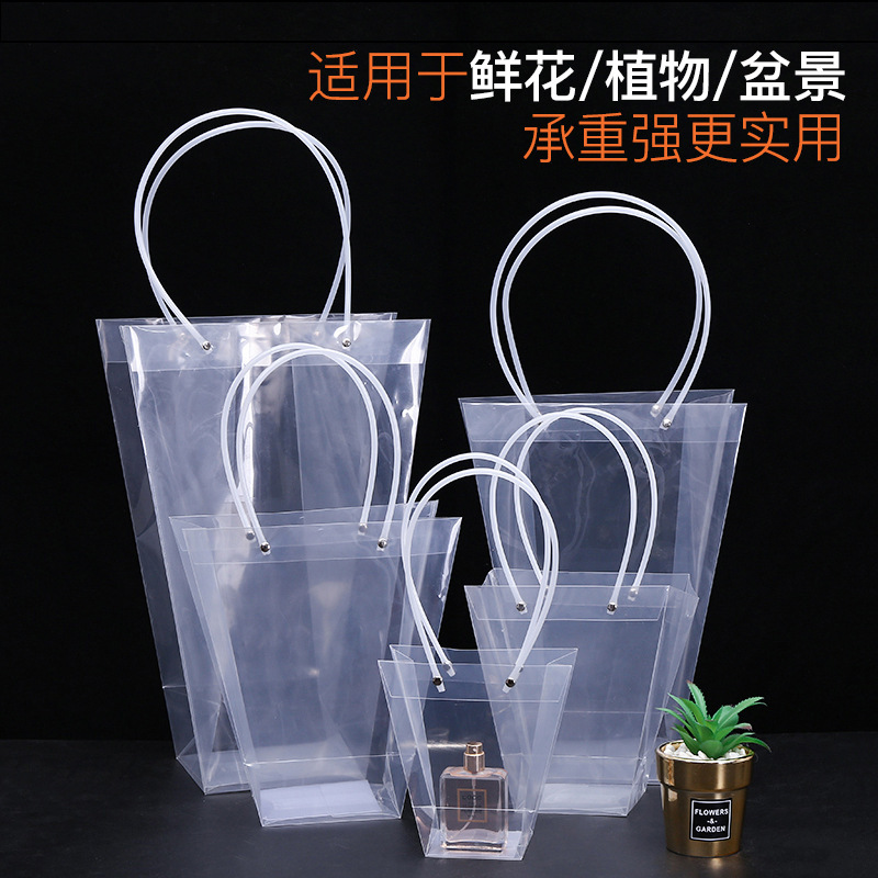 透明な階段の形の袋の新鮮な花の袋の小さい香ばしい風の手提げ袋のppビニール袋の鉢植えの袋の多肉の鉢植えの袋は露店の花のかごを並べます。