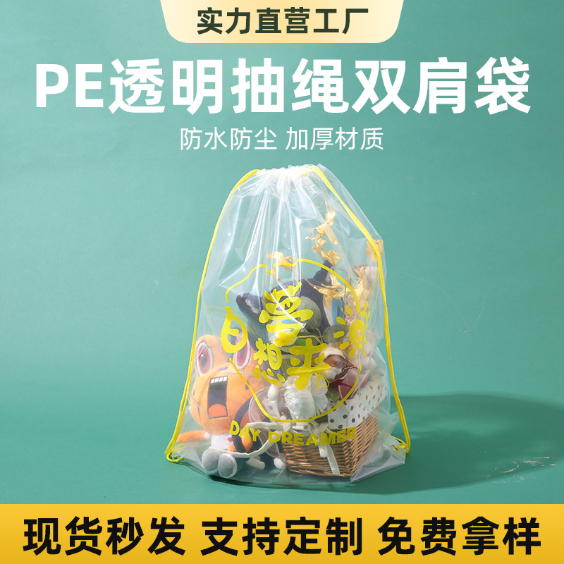 现货透明PE抽绳束口袋定制玩具袋玩偶包装袋旅行收纳鞋服塑料袋