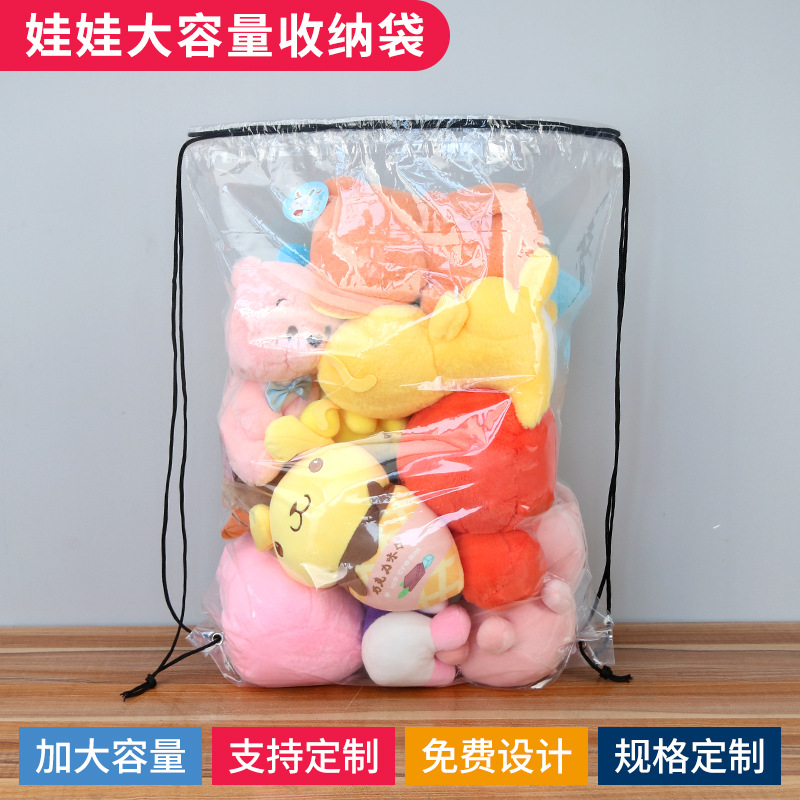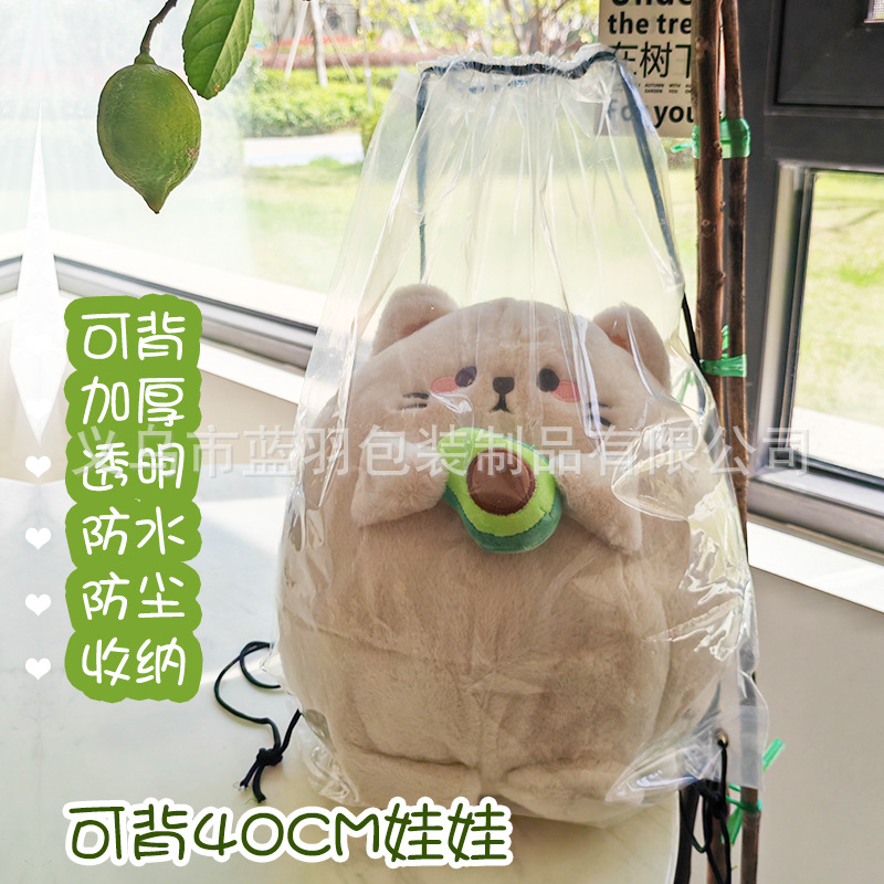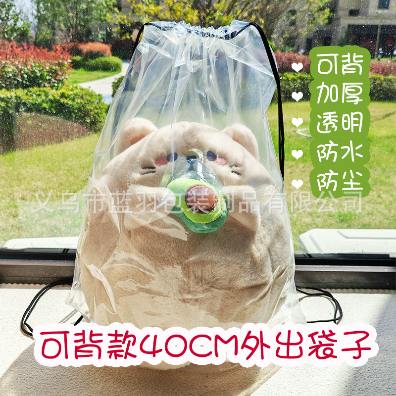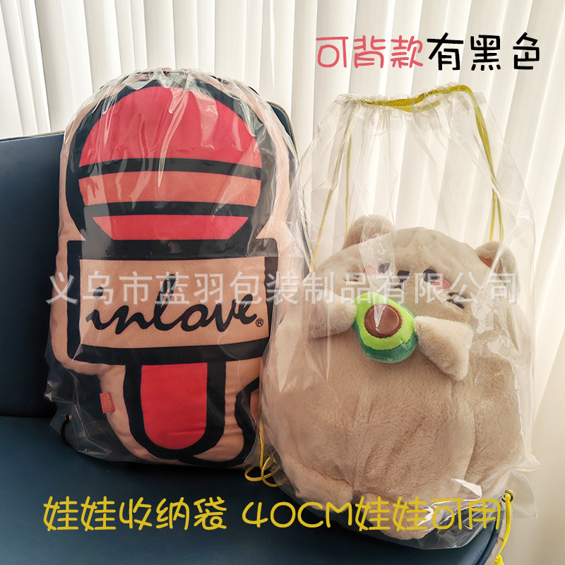 包郵便透明ひも束口バックパック袋peプラスチック防塵掴み人形収納袋綿人形外袋