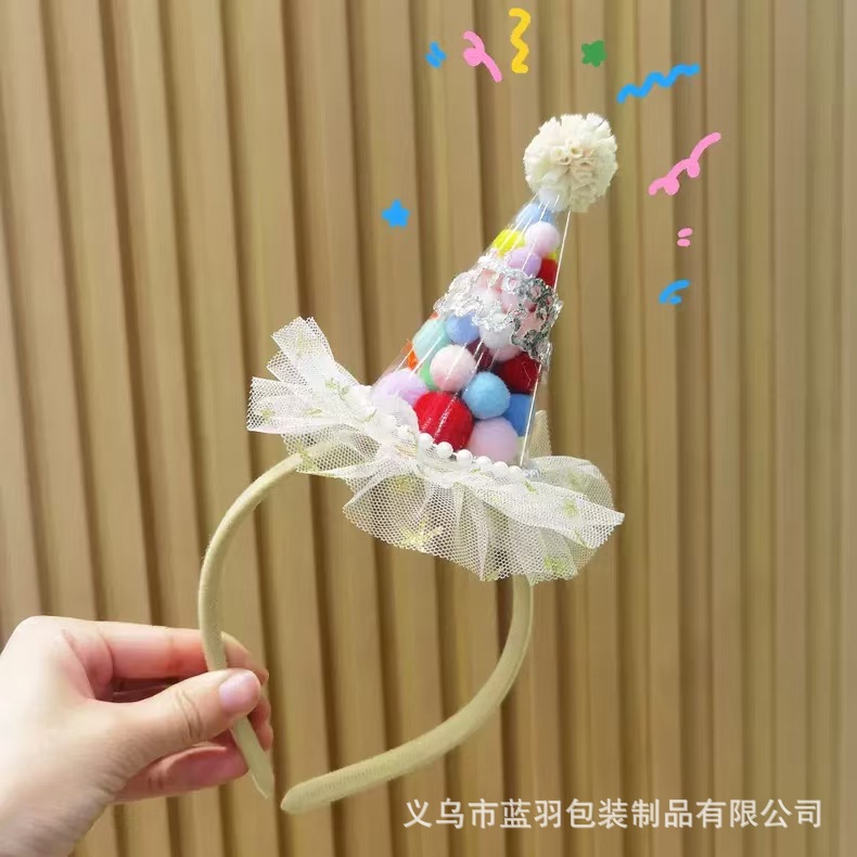 メッシュ诞生日リトルプリンセス髪フープ帽子子供パーティーキャンディー毛玉髪冠レインボードーパミン髪饰り女の子