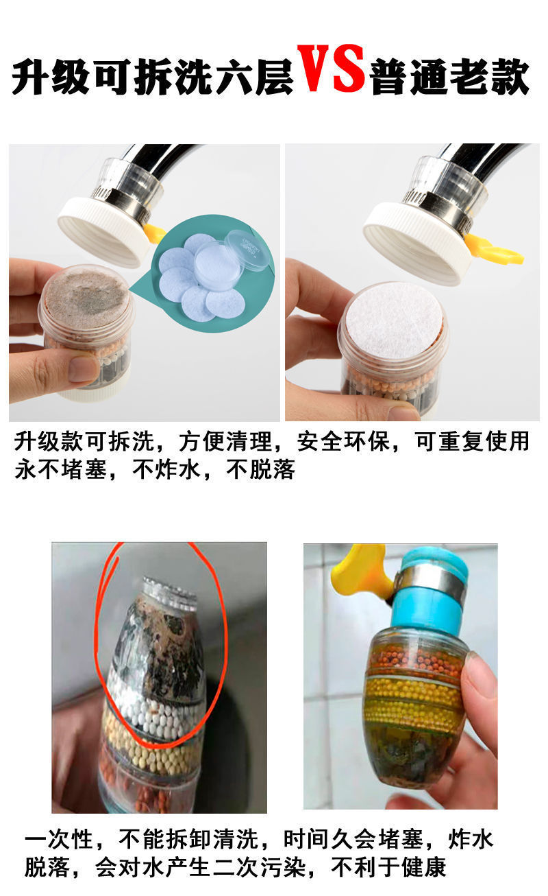 家庭用取り外し可能な洗濯可能な回転可能な6層の蛇口フィルター