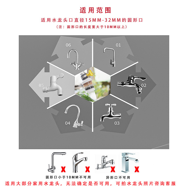 汎用取り外し可能6層蛇口フィルタ家庭用台所水道水のスパッタ防止給水フィルター