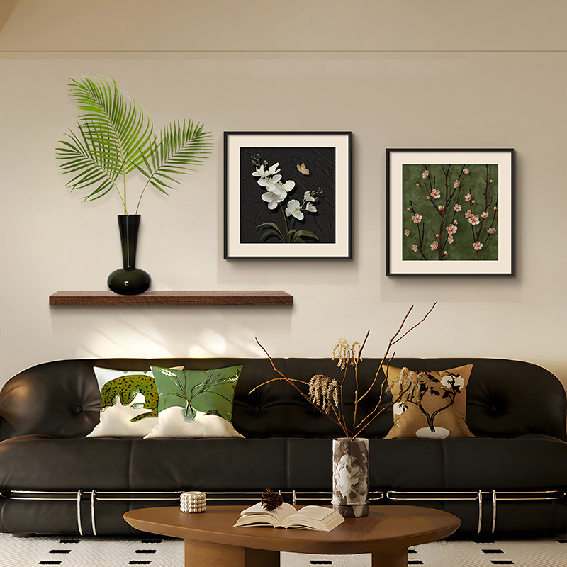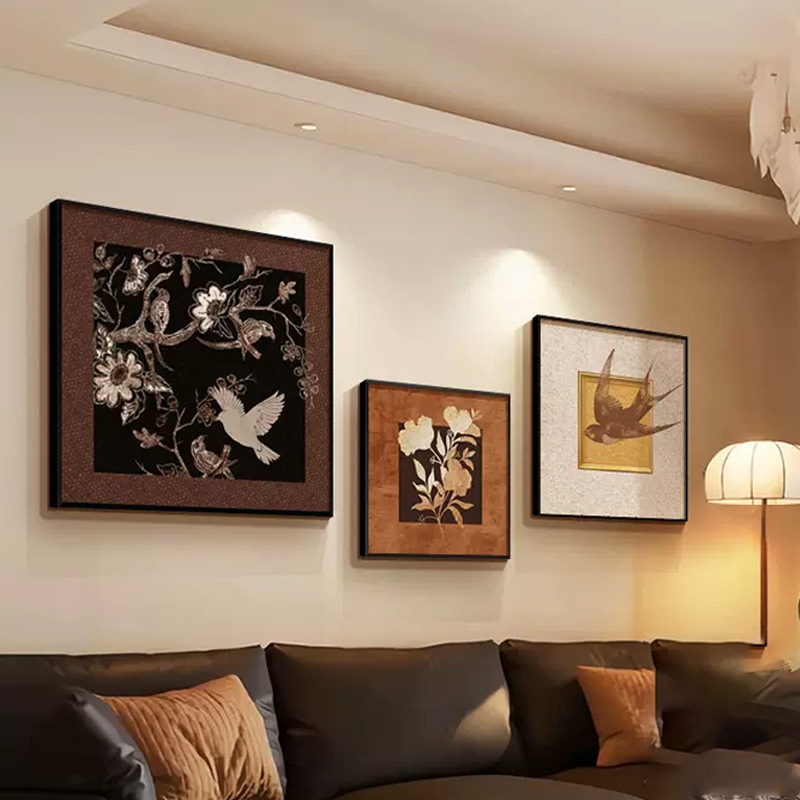中古风客厅沙发背景墙装饰画2025新款组合壁画高级感花卉四联挂画