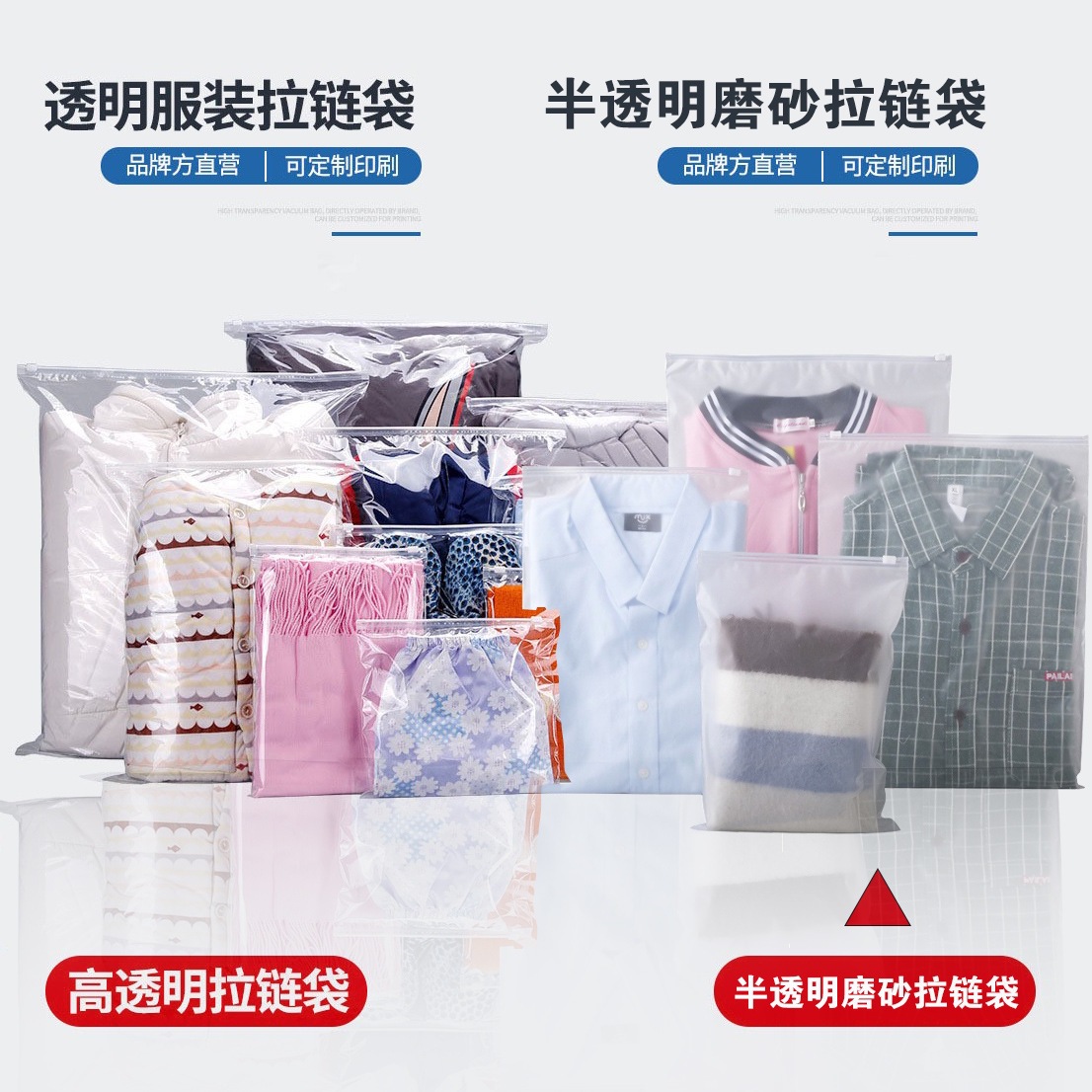 スポット卸売 pe 透明 cpe つや消し横型垂直収納衣類靴下下着下着プリントジッパーバッグ