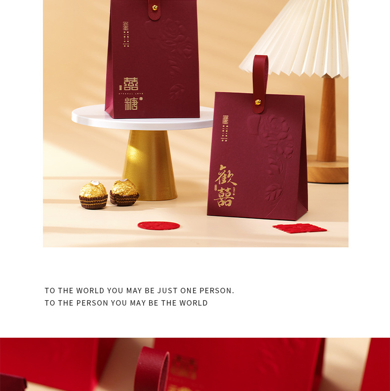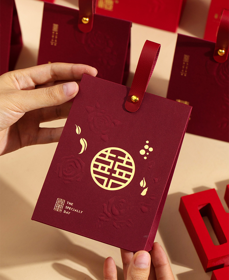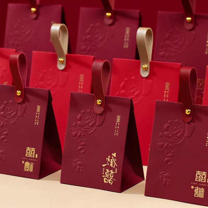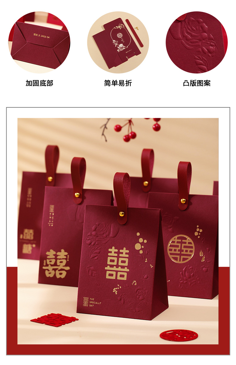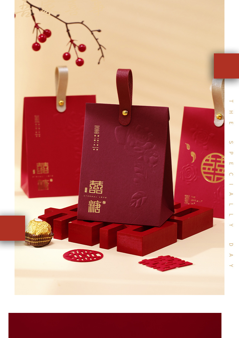 新型結婚専用喜糖箱結婚式婚約回礼箱お土産手提げ高級感喜糖袋新国風