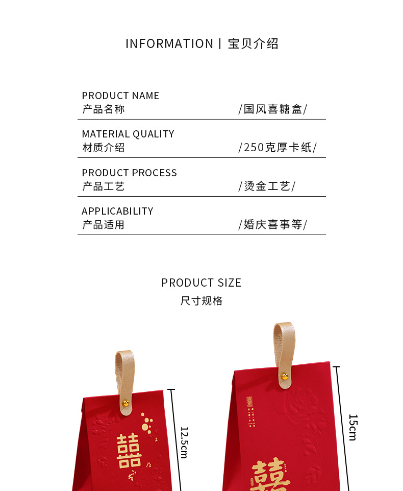 新型国風喜糖箱結婚専用喜糖箱結婚式婚約回礼箱お土産手提げ喜糖袋