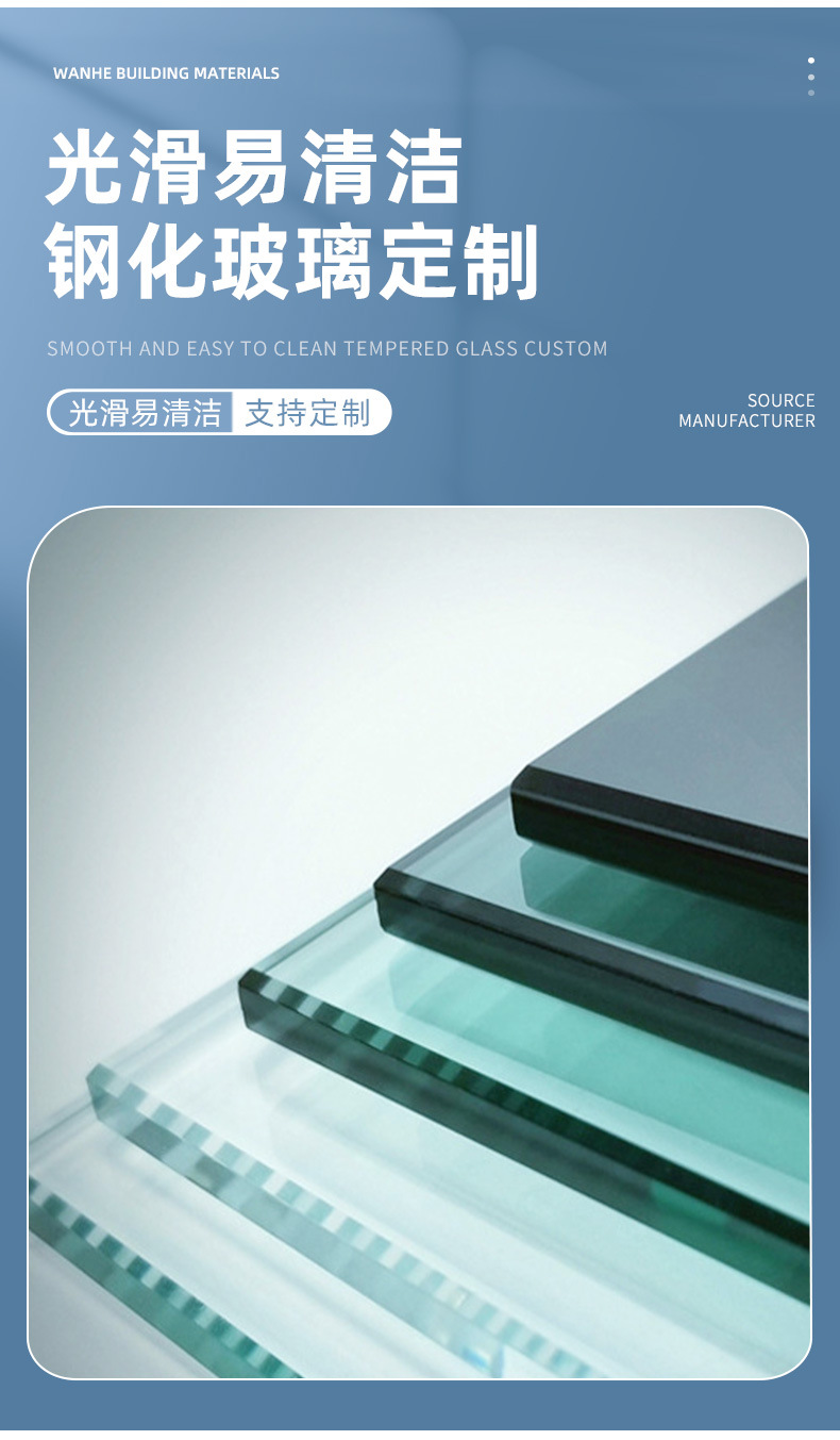 強化ガラスカスタムメーカー直接販売建物強化透明ガラス家具建物強化ガラス卸売