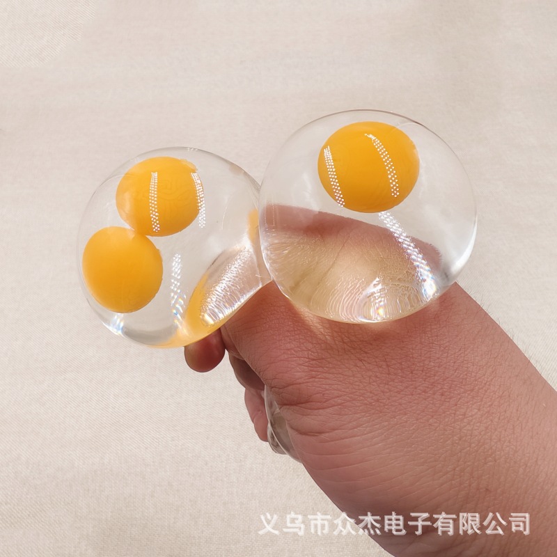 透明模擬卵ソフト接着剤ダブルイエロー卵人形卵トリッキー絞り楽しい卵絞りおもちゃ子供の発散おもちゃ
