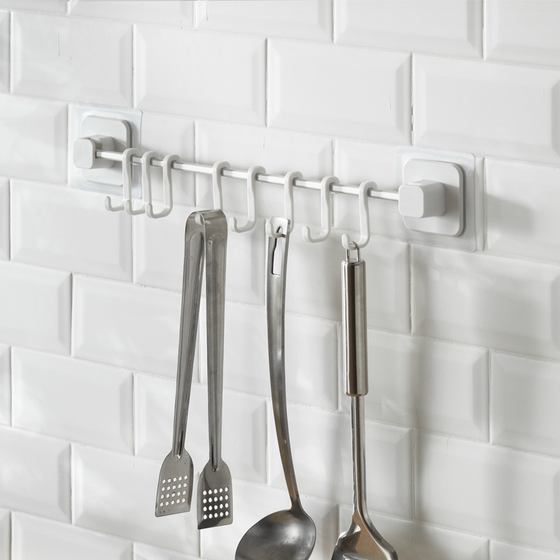 納川シンプル多機能8フック付き自由移動吊りフックキッチン用品穴なし壁掛けラック