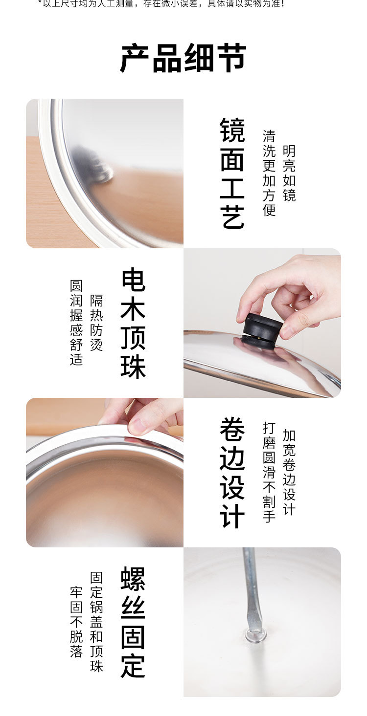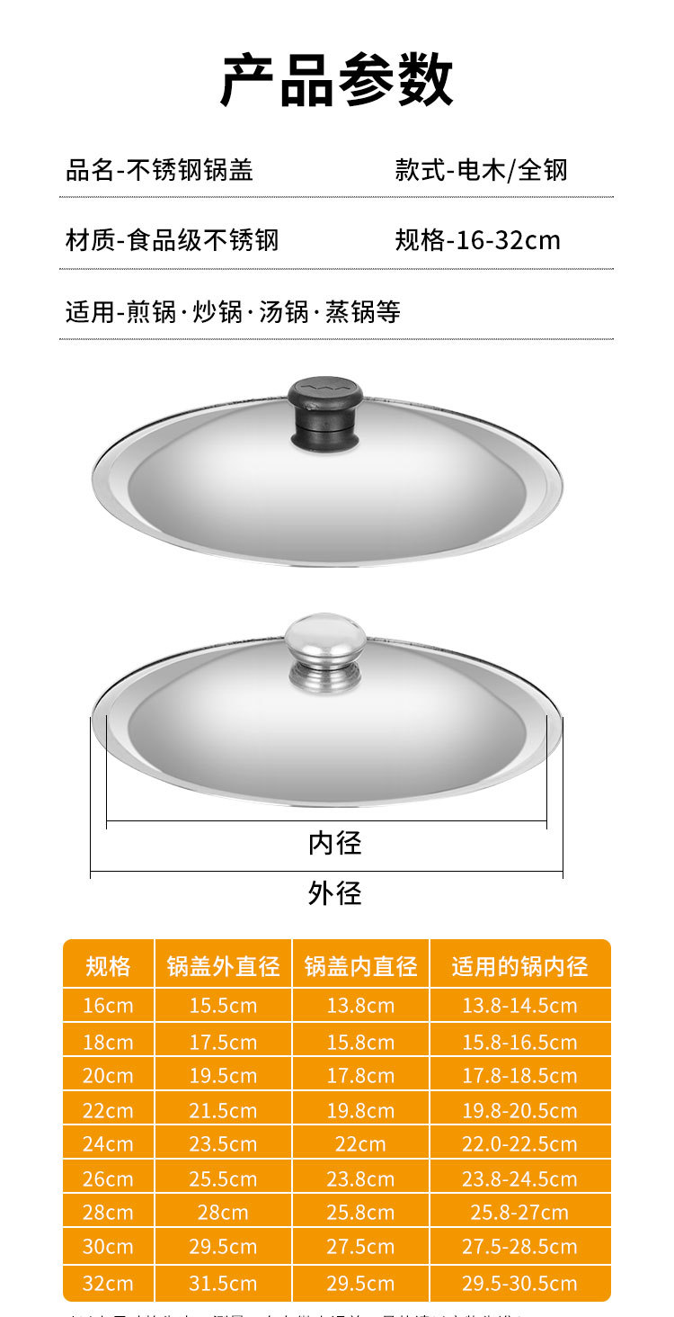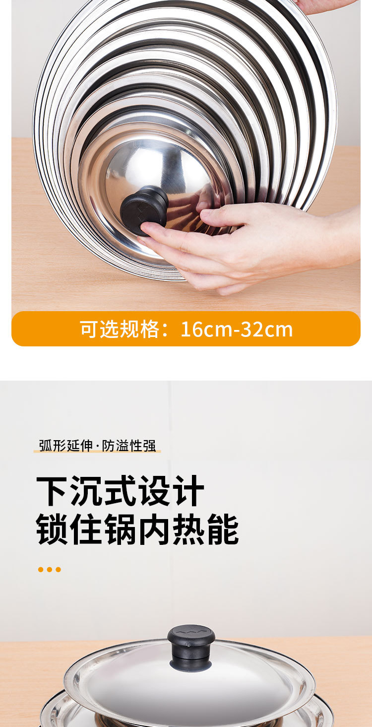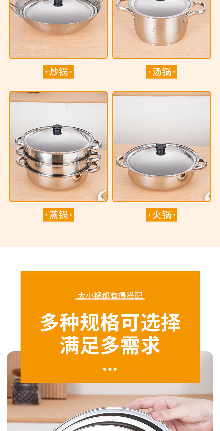 ステンレス丸蓋丸蓋通用万能蓋通用碗蓋炒め料理の小さいサイズの鍋蓋家庭用ins