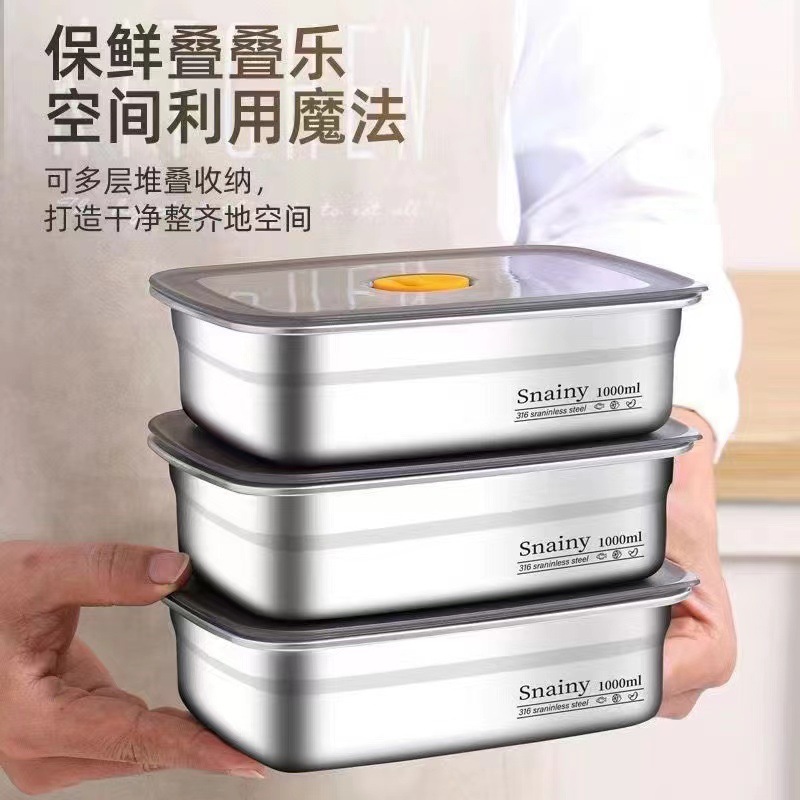 メーカー直販ステンレス鮮度保持箱食品級密封蓋長方形ピクニック携帯ケース冷蔵庫オーブン