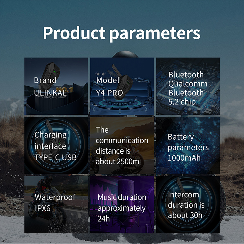Ulink alクロスボーダー4方立体音響長航続遠距離FMヘルメットbluetoothインターホンY4PRO