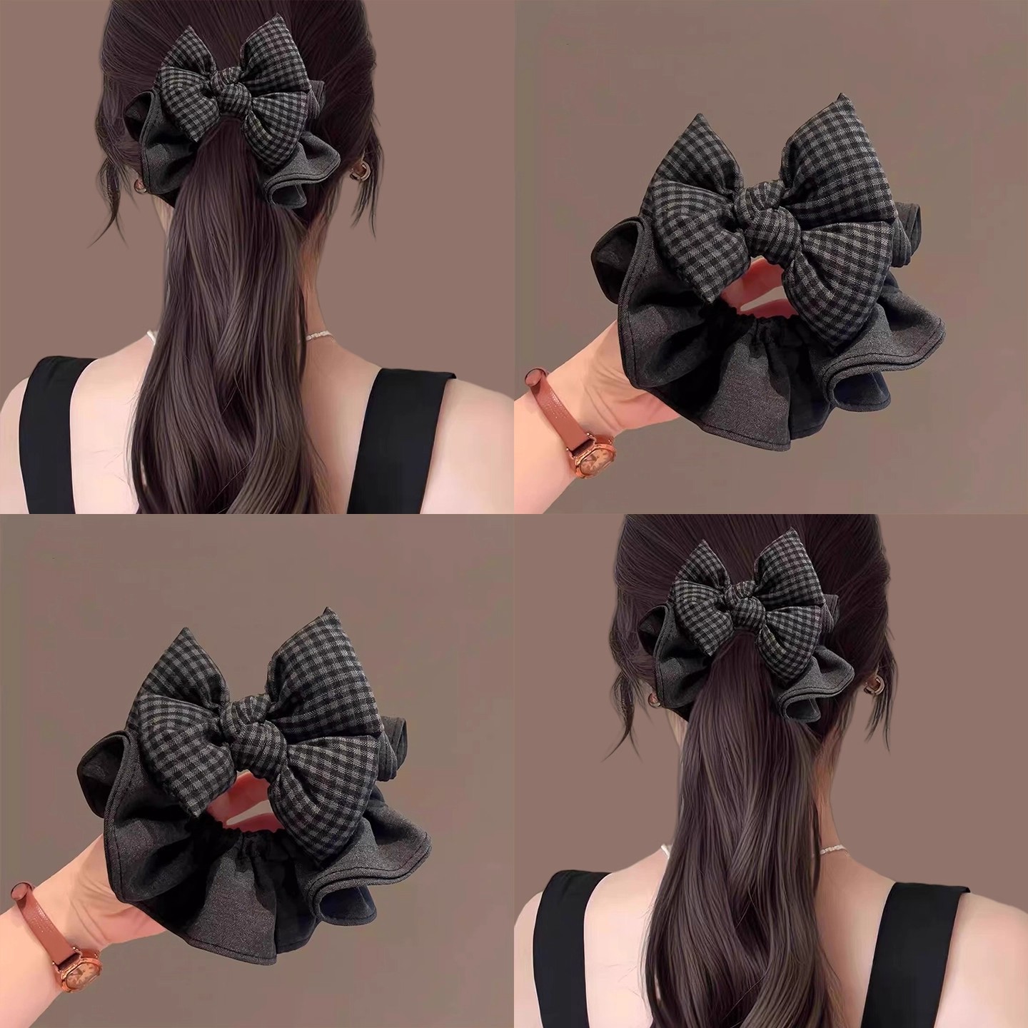 黑灰格纹蝴蝶结发圈韩系高端发饰头绳2025新款质感布艺肠圈发绳女