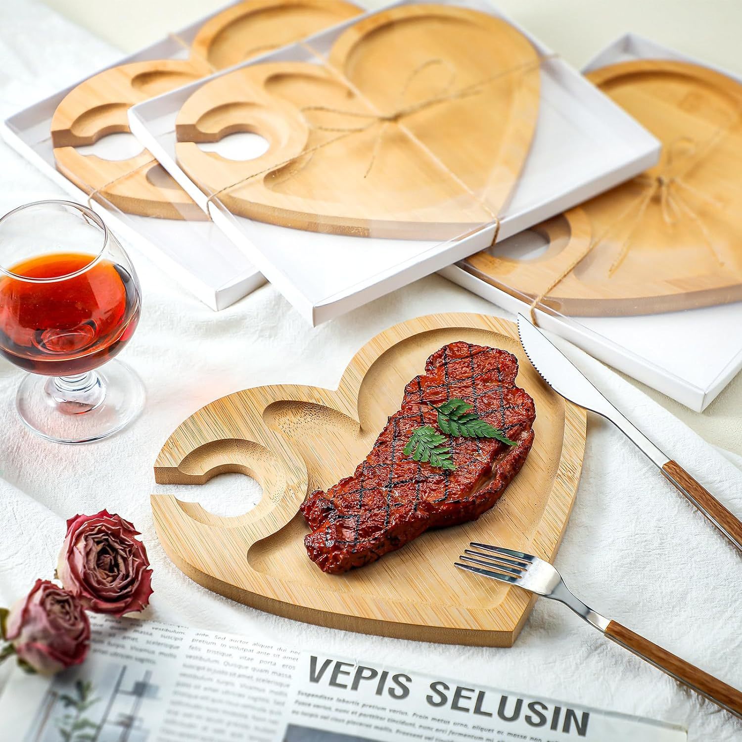 ハート型の竹のトレーのアイデアのデザインは溝を開けて高足カップのお菓子のケーキのステーキの午後のお茶を置くことができます。