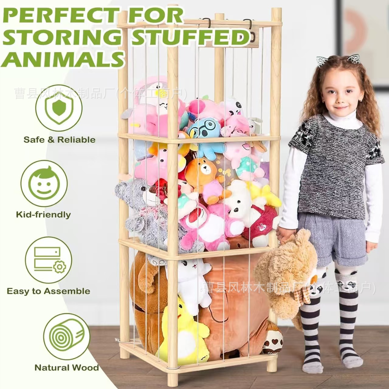 木製ぬいぐるみ収納ラックリビングルーム床置き人形ディスプレイラック寝室大容量おもちゃ収納ラック