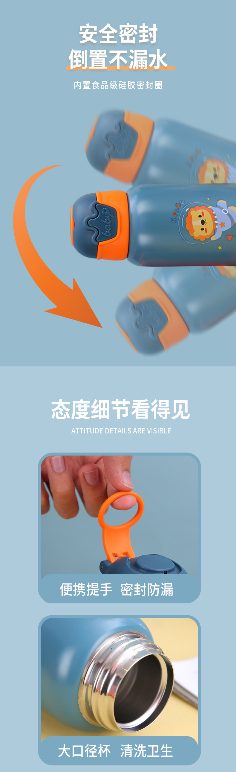 保温水筒卸売 子供向け漫画風可愛い高品質水筒 携帯用ストロー付き 落下防止レザーケース付き水筒
