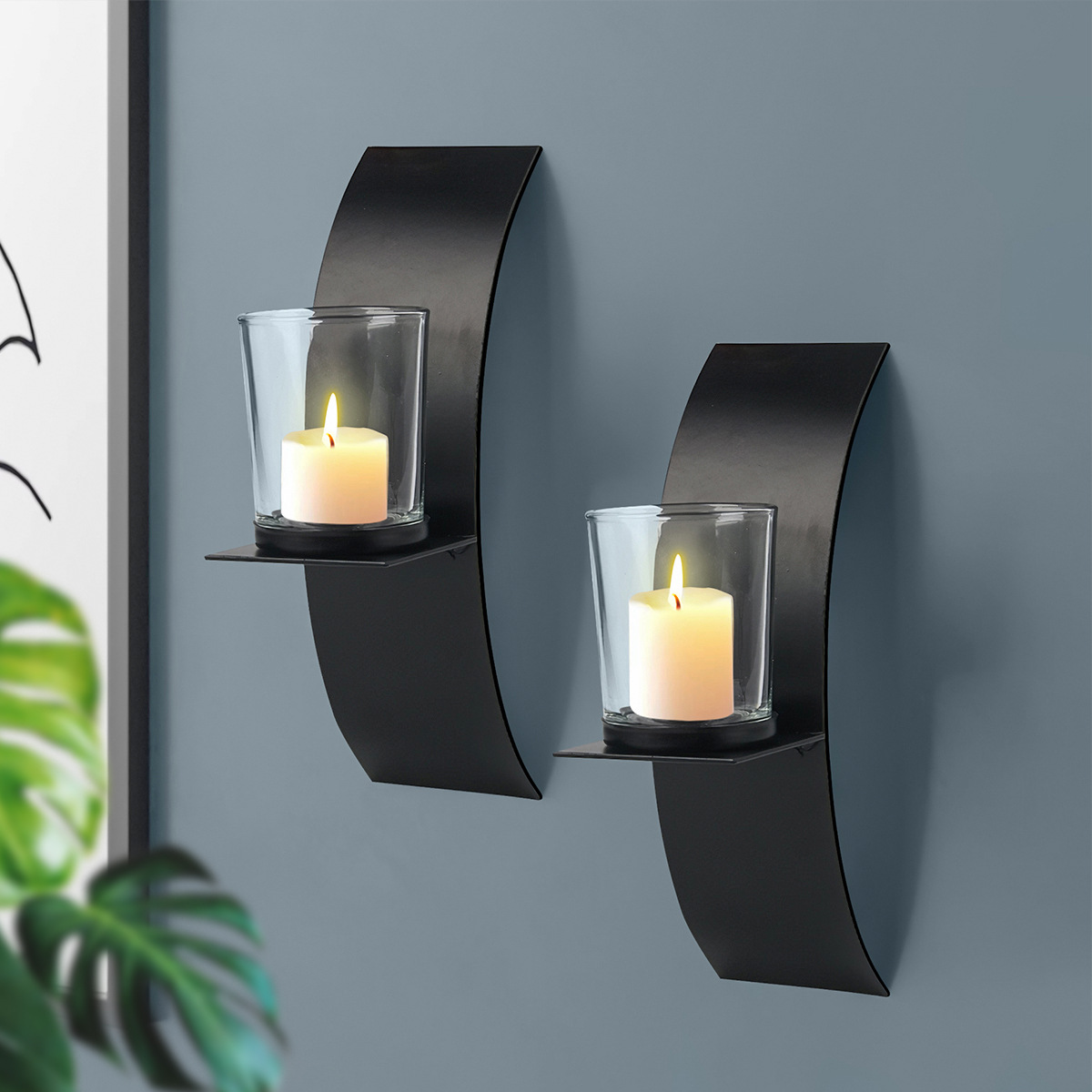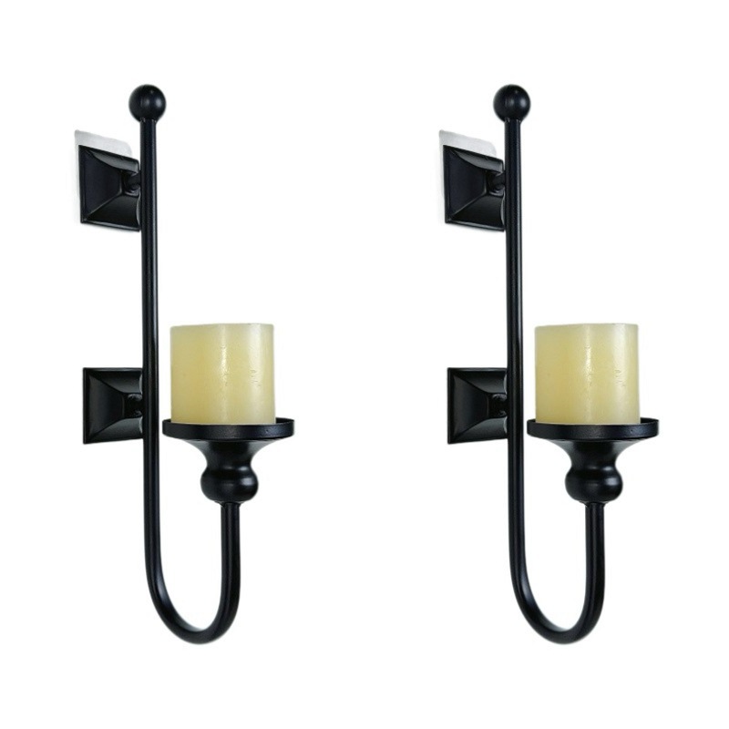 国境を越えたシンプルな黒色壁掛け燭台家庭雰囲気装飾金属ろうそく架庭園壁吊りろうそくカップ