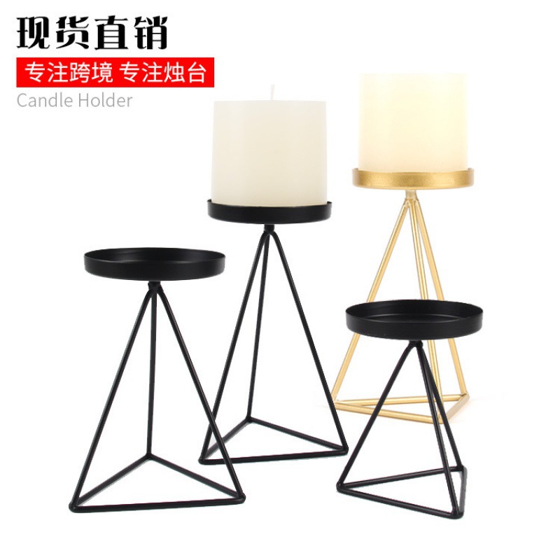 Ins北欧三角四面体ろうそく台幾何学鉄芸ろうそく杯トレー柱ワックス盤円形金色ベース