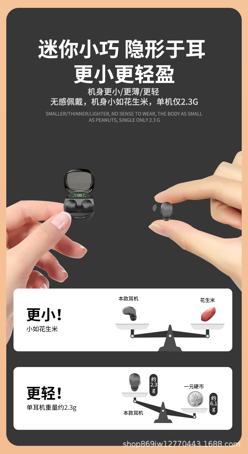 起爆私型TWS無線bluetoothイヤホンビジネス運動睡眠デジタル超薄型は耳に入らない