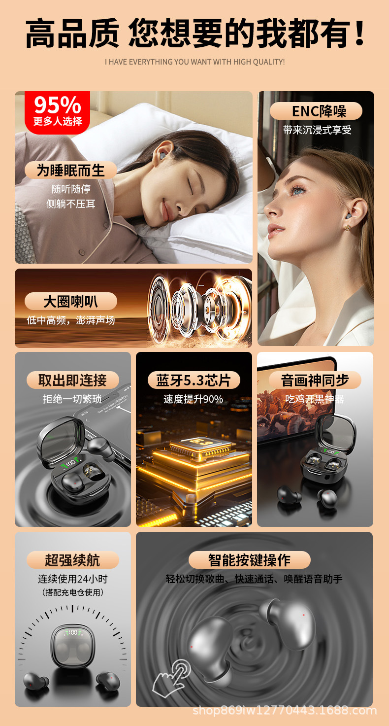 跨境新款Y19 睡眠迷你无线蓝牙耳机佩戴舒适超长续航降噪私模通用