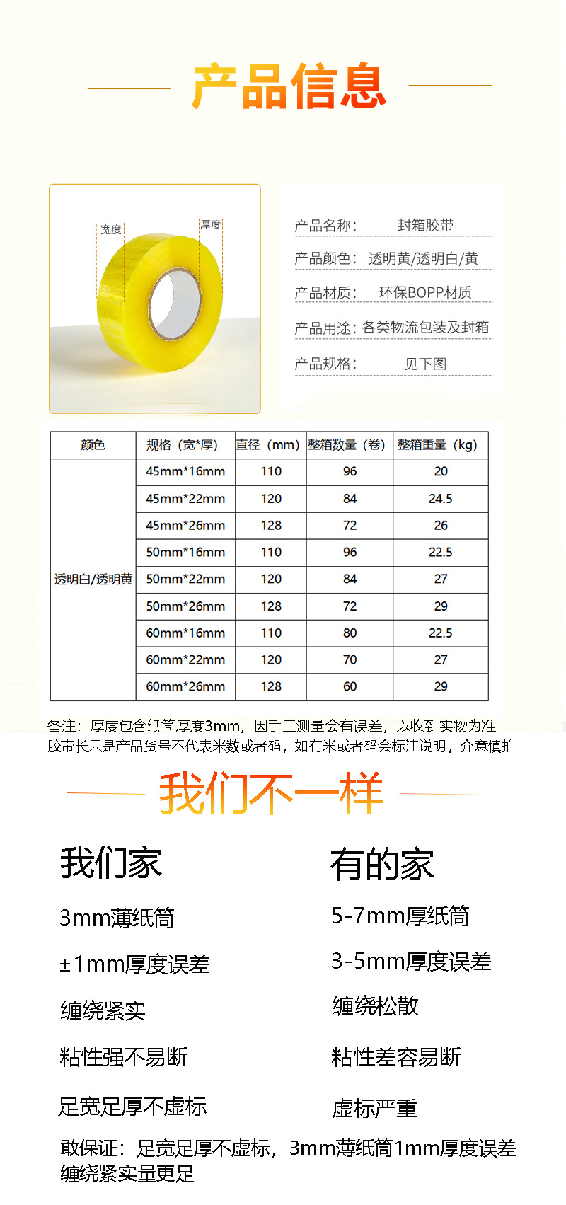 透明な黄色 (幅と厚さが十分で、偽りのない)、幅 4.5、厚さ 1.6、長さ 100 (96 ロールのフルボックス),透明な黄色 (幅と厚さが十分で、偽りのない標準)、幅 4.5、厚さ 2.2、長さ 150 (全箱 84 ロール),透明な黄色 (幅と厚さが十分で、偽りのない標準)、幅 4.5、厚さ 2.6、長さ 180 (72 ロールのフルボックス),透明な黄色 (幅と厚さが十分で、偽りのない)、幅 5.0、厚さ 1.6、長さ 100 (96 ロールのフルボックス),透明な黄色 (十分な幅と厚さ、偽りのない)、幅 5.0、厚さ 2.2、長さ 150 (全箱 84 ロール),透明な黄色 (幅と厚さが十分で、偽りのない)、幅 5.0、厚さ 2.6、長さ 180 (72 ロールのフルボックス),透明黄色(幅と厚さが十分で、誤差なし)、幅6.0、厚さ1.6、長さ100(80ロールのフルボックス),透明黄色(幅と厚みが十分で、誤差なし)、幅6.0、厚さ2.2、長さ150(70ロールのフルボックス),透明黄色(幅と厚みが十分で、誤差なし)、幅6.0、厚さ2.6、長さ180(60ロールのフルボックス),透明白(幅と厚みが十分で、偽りのない)、幅4.5、厚さ1.6、長さ100(96ロールのフルボックス),透明白(幅と厚みが十分で、偽りのない)、幅4.5、厚さ2.2、長さ150(全箱84ロール),透明白(幅と厚みが十分で、偽りのない)、幅4.5、厚さ2.6、長さ180(72ロールのフルボックス),透明白(標準にふさわしい幅と厚さ)、幅5.0、厚さ1.6、長さ100(96ロールのフルボックス),透明白(幅と厚みが十分で、偽りのない)、幅5.0、厚さ2.2、長さ150(全箱84ロール),透明白(幅と厚みが十分で、偽りのない)、幅5.0、厚さ2.6、長さ180(72ロールのフルボックス),透明白(幅と厚みが十分で、偽りのない)、幅6.0、厚さ1.6、長さ100(80ロールのフルボックス),透明白(幅と厚みが十分で、偽りのない)、幅6.0、厚さ2.2、長さ150(70ロールのフルボックス),透明白(幅と厚みが十分で、偽りのない)、幅6.0、厚さ2.6、長さ180(60ロールのフルボックス)