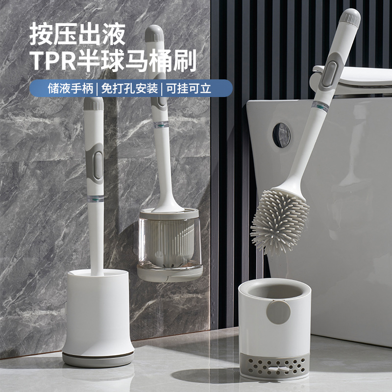 加液马桶刷免打孔壁挂沥水家用按压出液长柄无死角厕所清洗刷跨境