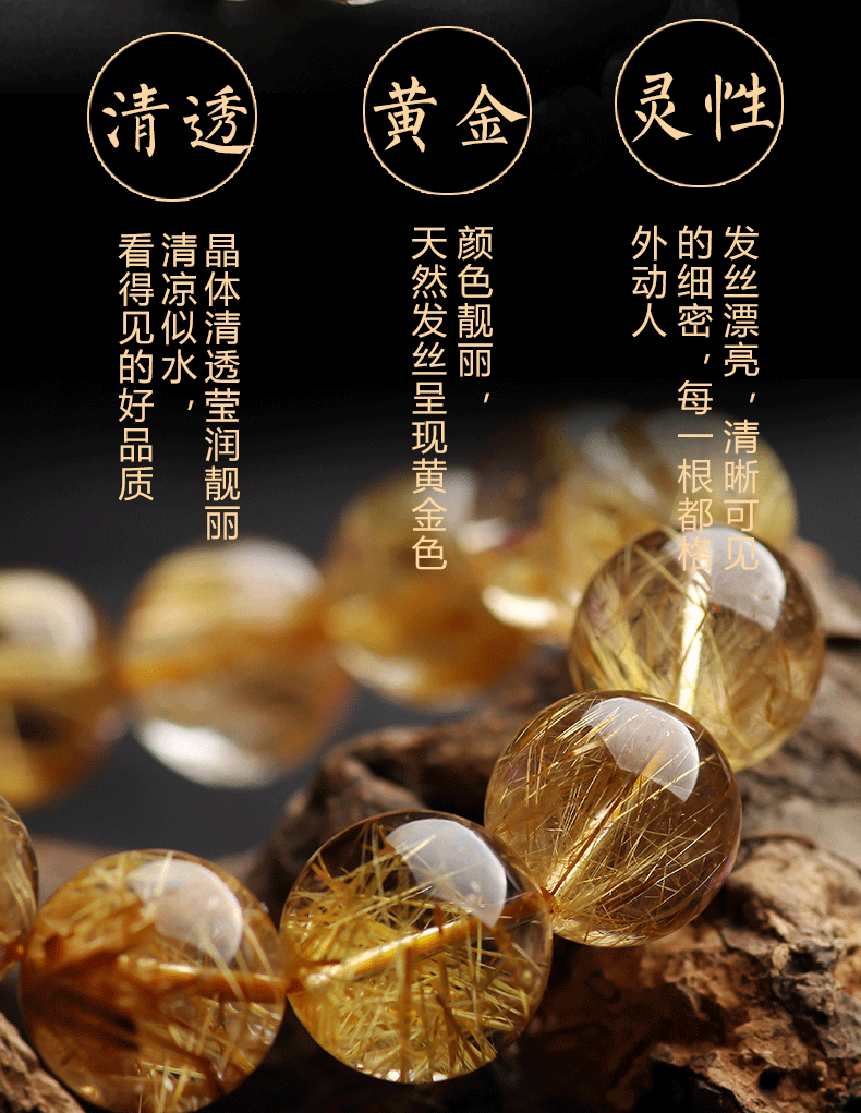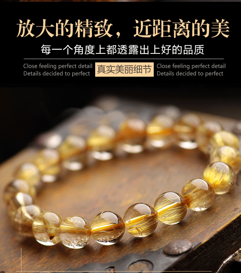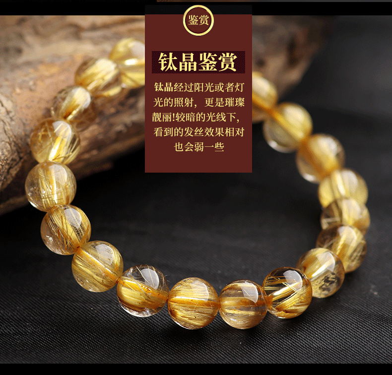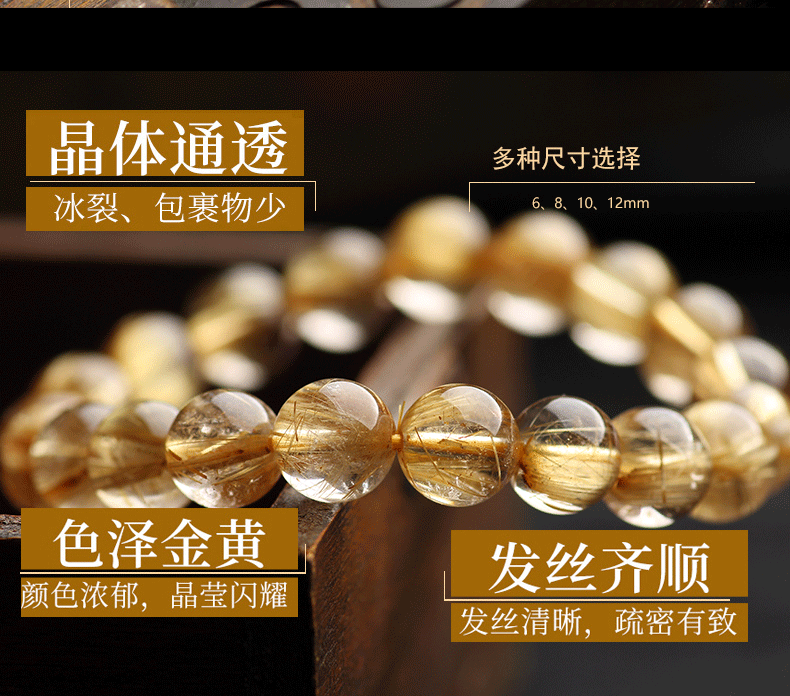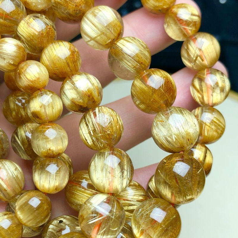 ブラジル天然金発晶ブレスレット女性黄水晶黄発晶多輪手串男女金チタン晶板チタン晶招財