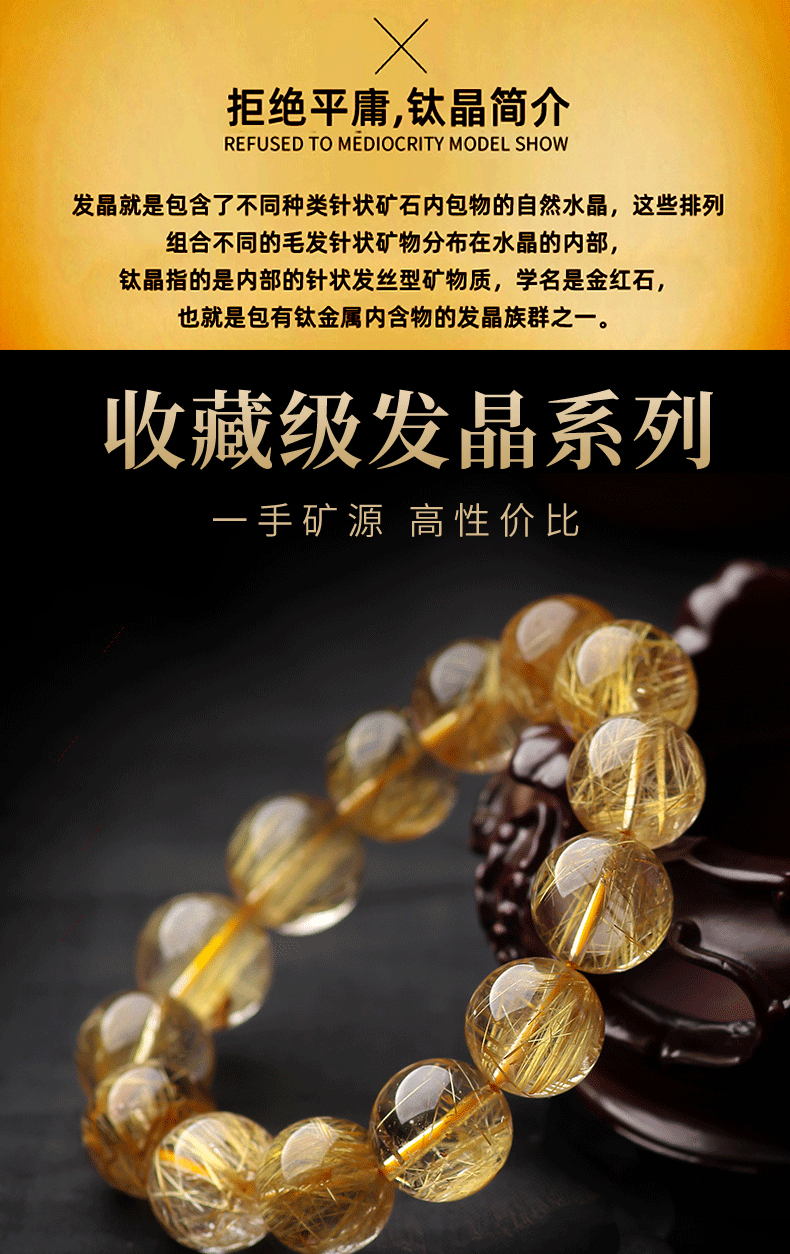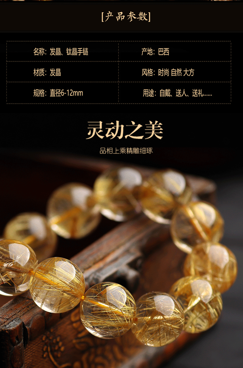 収蔵級天然チタン晶ブレスレット女ブラジル猫眼石板チタン金髪晶男順髪満髪黄水晶手串