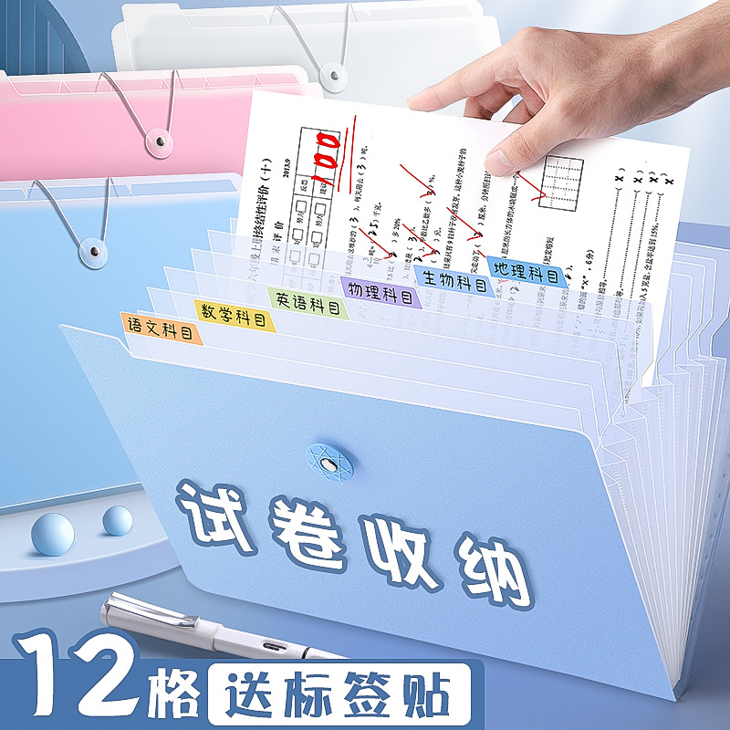 A4オルガンバッグ4格8格12格資料冊大容量学生試巻収納クリップ資料分類整理冊