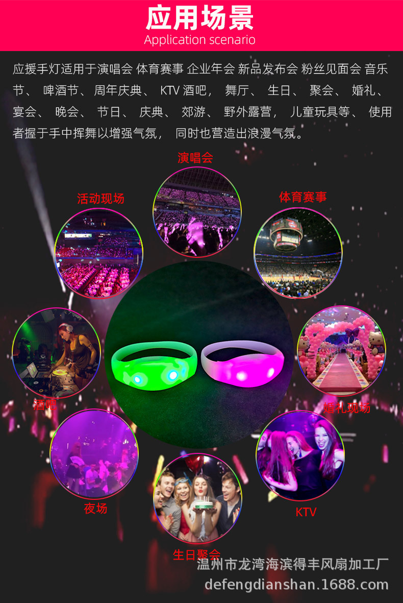 フィールドコントロールリモコン変色発光ブレスレットコンサート音楽祭バー用シリコン15色LED蛍光灯
