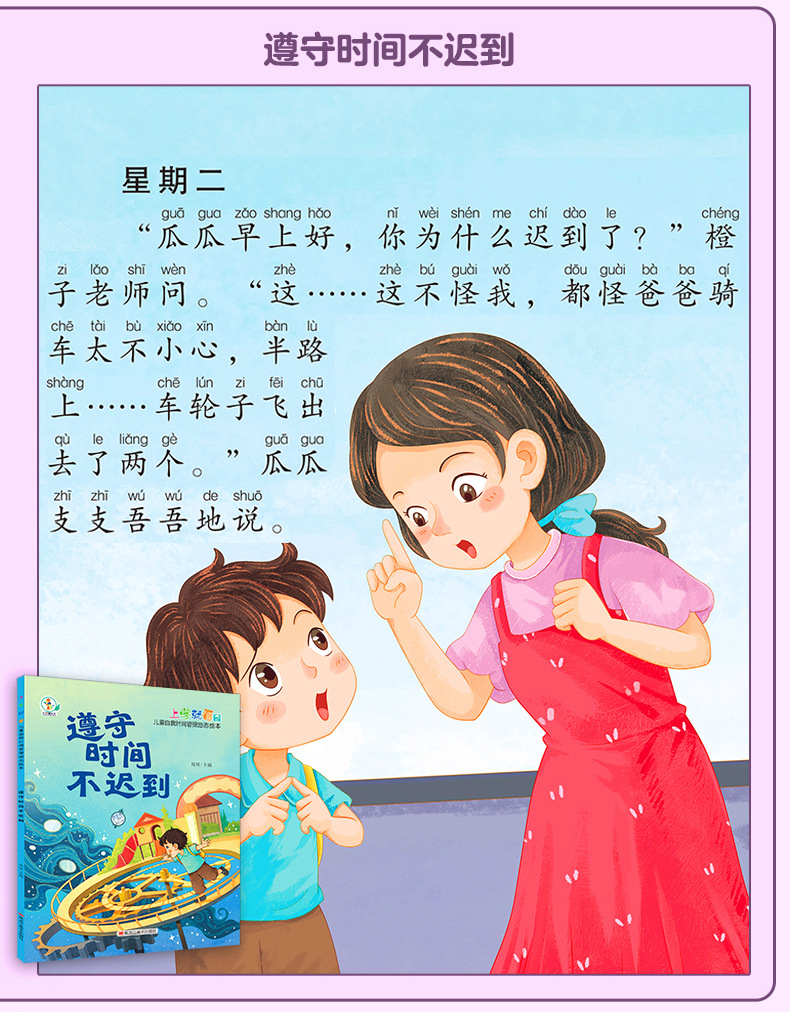 学校に行くと子供の自己時間管理意欲絵本3-6歳幼稚園の早教啓蒙書籍卸売りを見ます。
