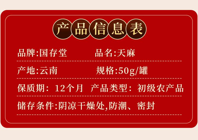Guocuntang Gastrodia elata タブレット、雲南趙通産ウードウチク 50g 缶詰、クコの実入り、粉末化可能、卸売、迅速発送可能、代理発送対応
