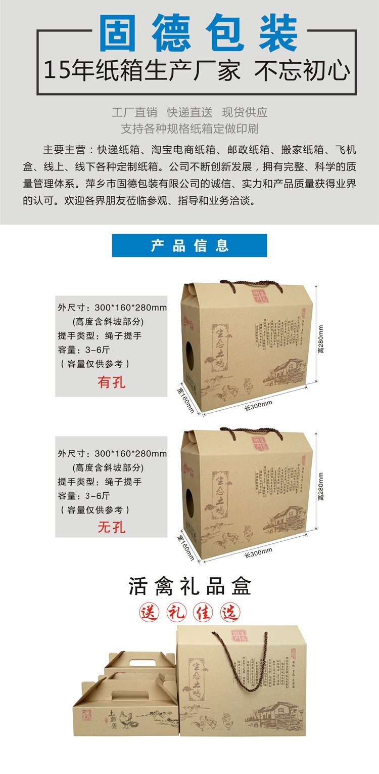 活鸡包装盒土鸡礼盒5斤8斤农家散养活禽公鸡手提空纸箱包装箱箱子