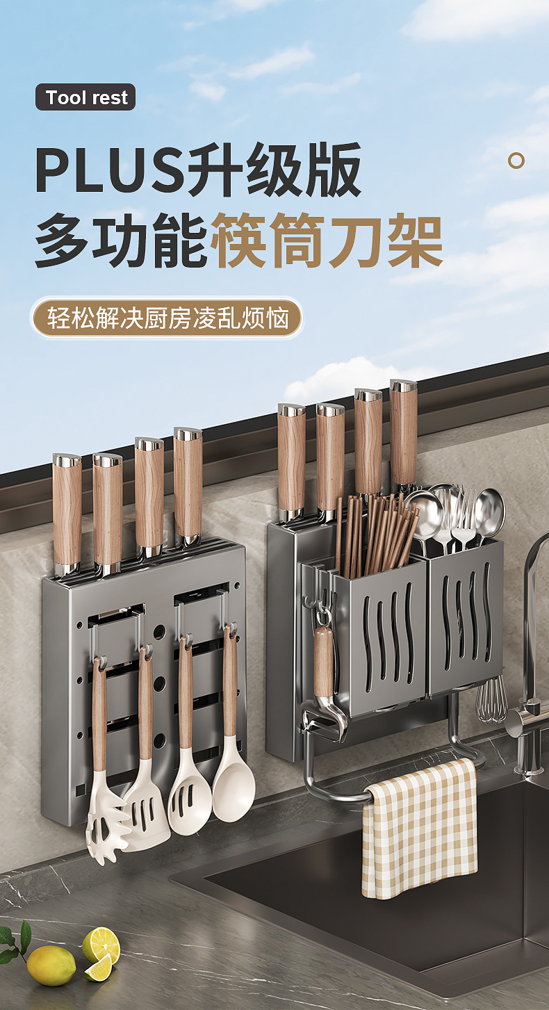 厨房筷笼刀架一体刀架筷子筒收纳多功能刀具筷子勺子置物架壁挂式