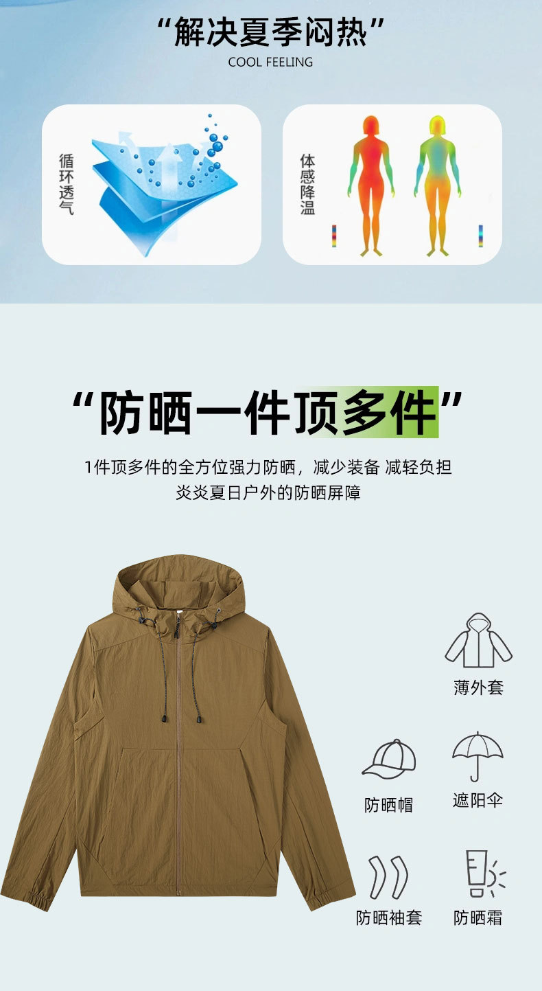 Upf50 + 日焼け止め服男女カップルのアウトドアスポーツ夏の紫外線防止通気性涼しさフード付き皮膚服