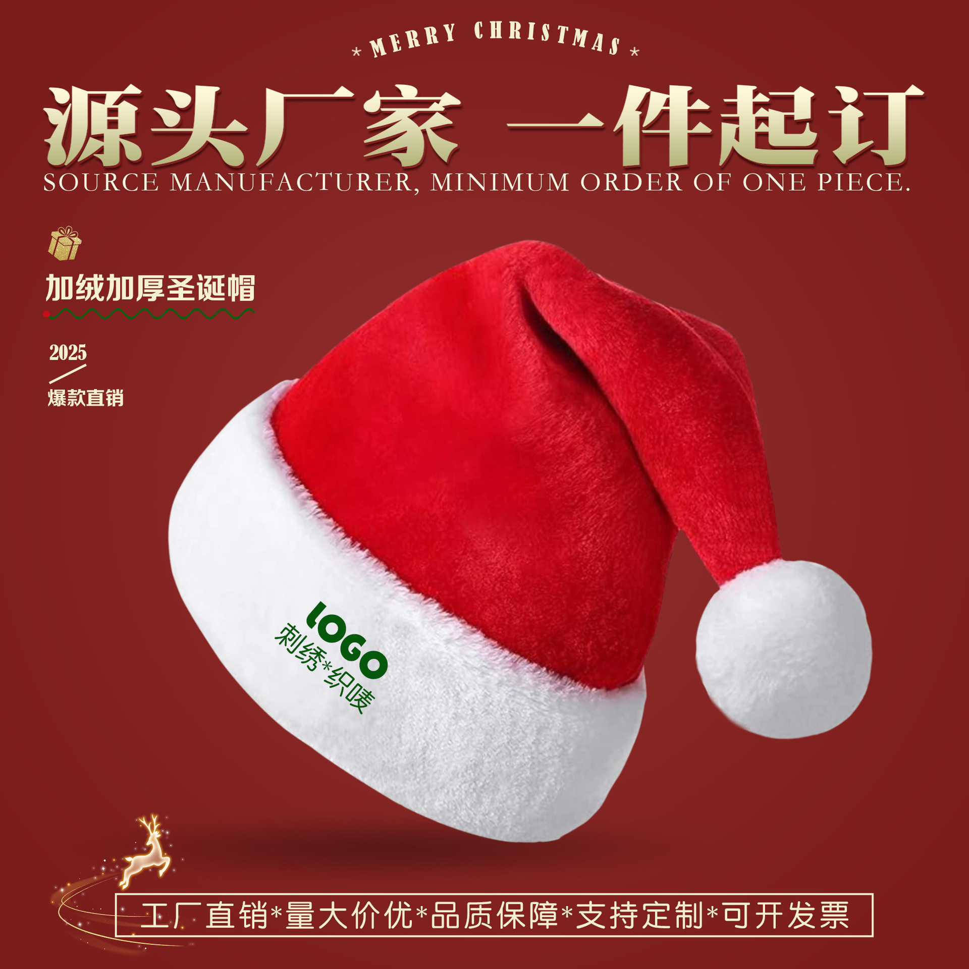2025跨境圣诞季加绒加厚毛绒圣诞帽定制logo圣诞节氛围感装饰帽子