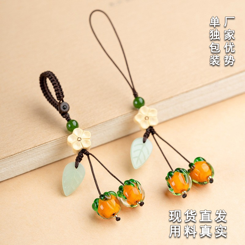 メーカー現物携帯ストラップuディスク携帯チェーン瑠璃柿ストラップレトロ中国風鍵ストラップペンダント