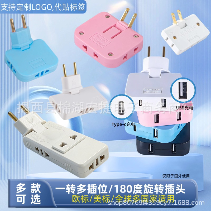 クロスボーダー専用欧州規格USBプラグTYPEC付き一回転多変換ソケット180度回転欧州規格変換プラグ