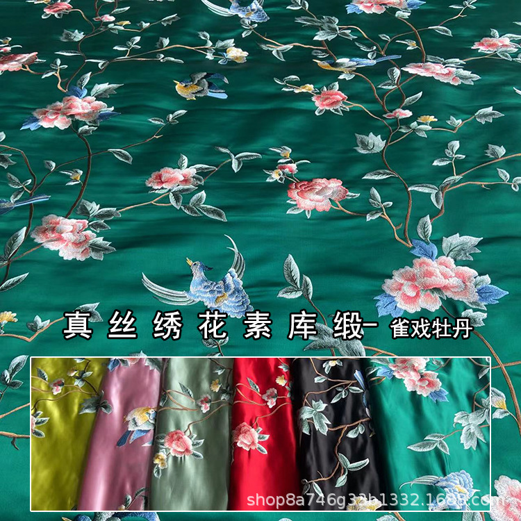 雀劇牡丹新中国式服装馬甲旗袍重工刺繍シルク生地刺繍シルク倉庫サテン生地