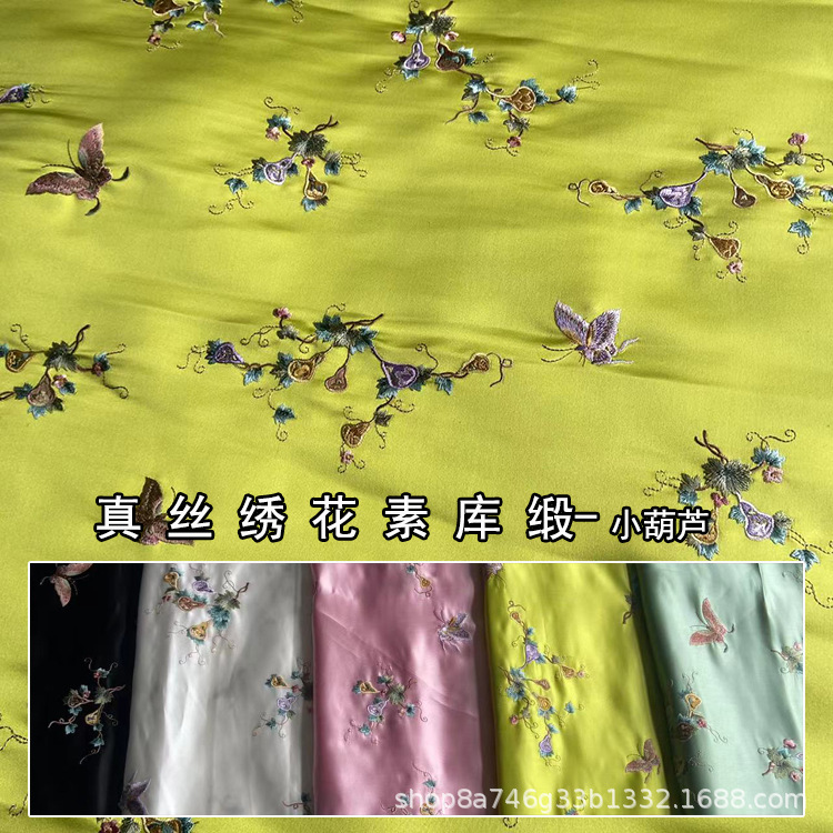 ひょうたんリボン花ジャカード桑波サテンシルク生地桑シルク万寿シルクdiy漢服シルク生地