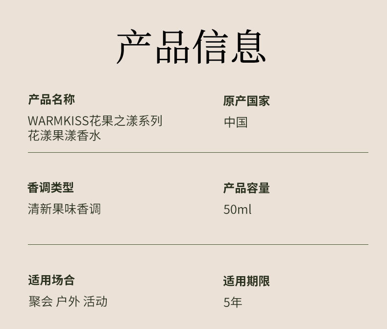 WARMKISSフルーツ香りシリーズ青提スモーク蜜桃の香り持続的な小さな国産ブランド香水50ml