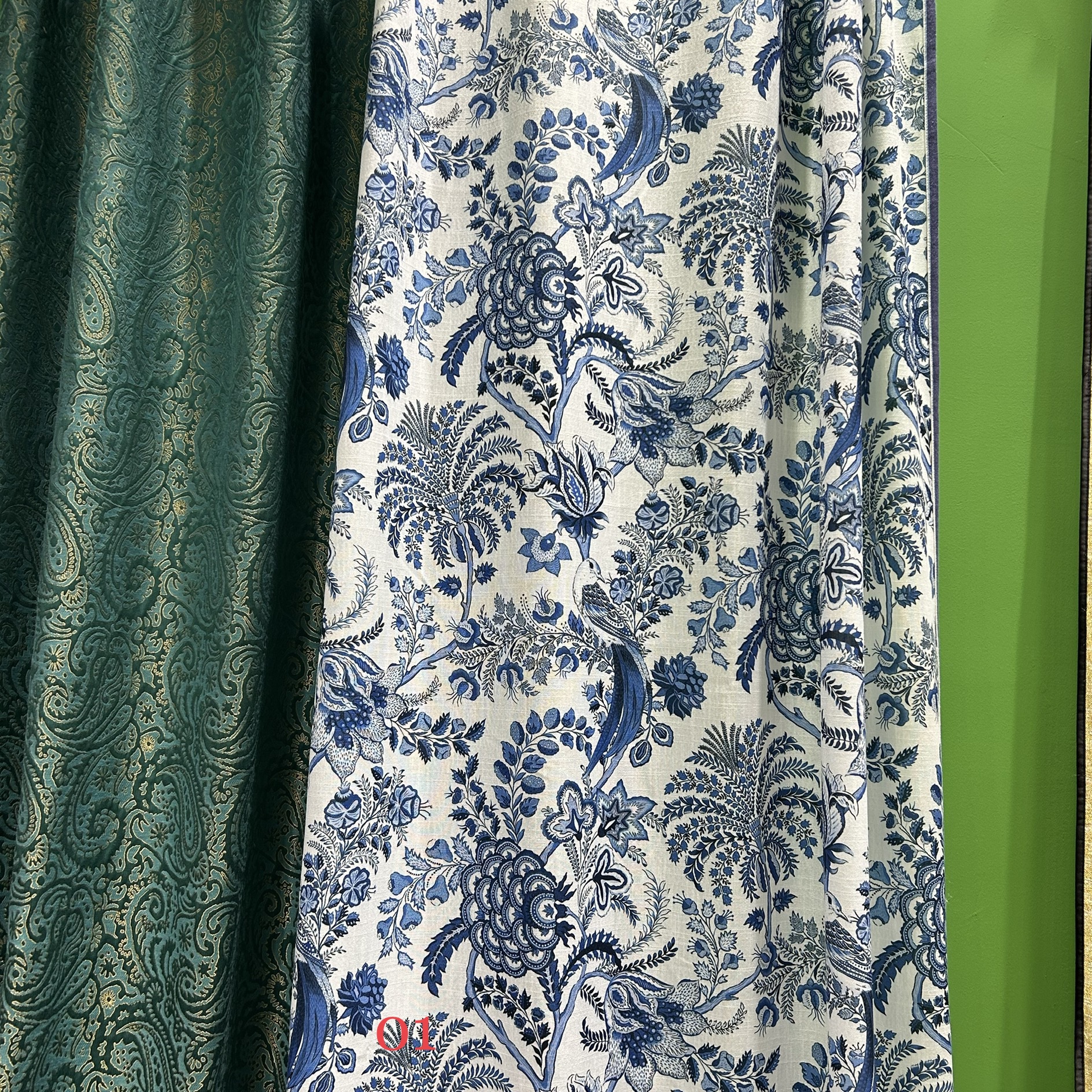ドア幅270cm定幅プリント花布新中国式花鳥国風レトロカーテン布テーブルクロスソフト生地