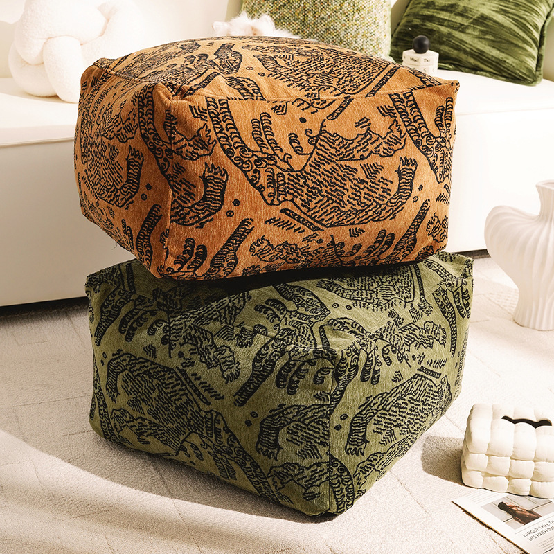 フレンチレトロクッションリビングルームブラウンスクエアクッションミッドセンチュリースタイル布団ハイエンドライト高級クッションレイジーソファスツール