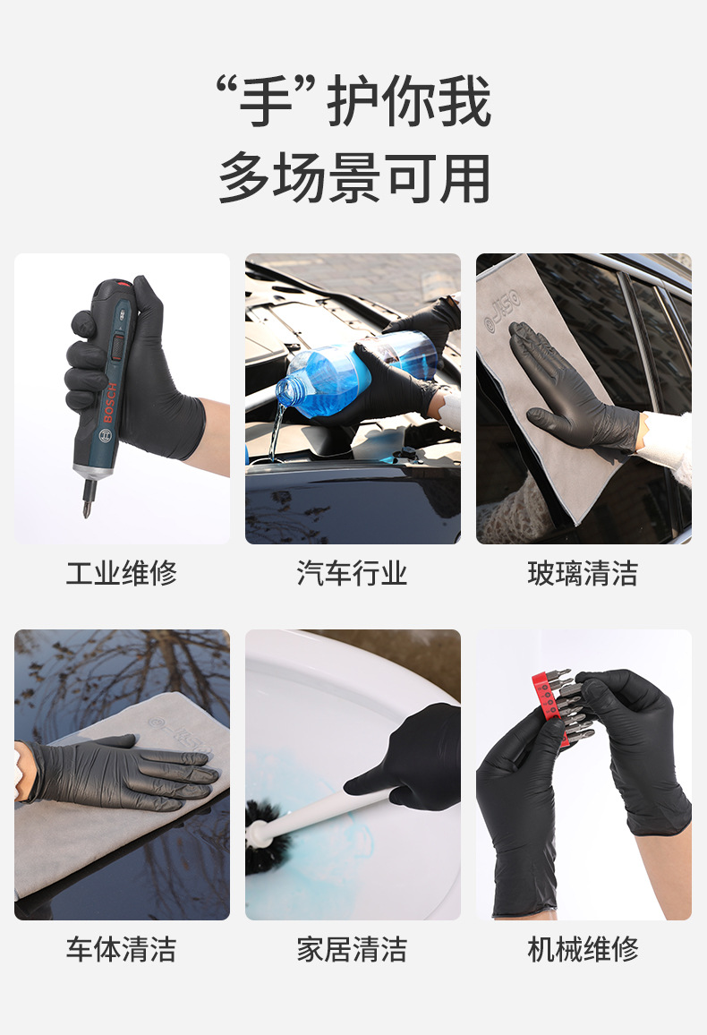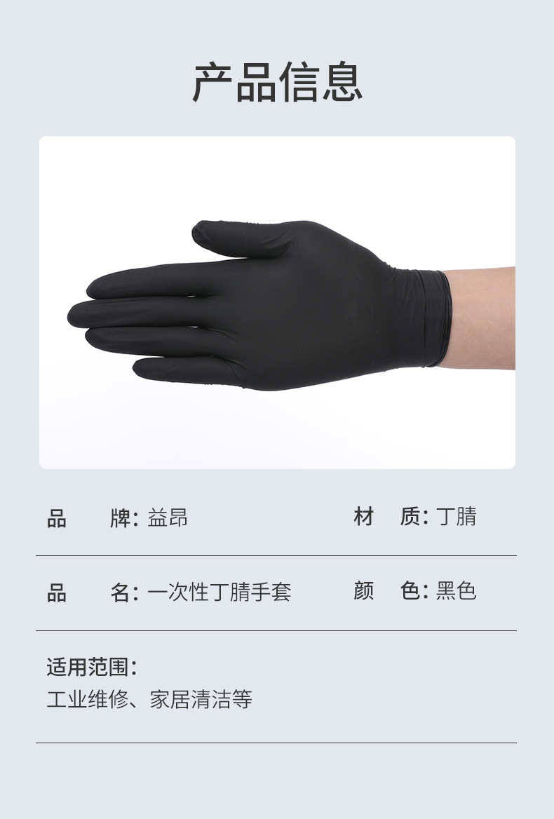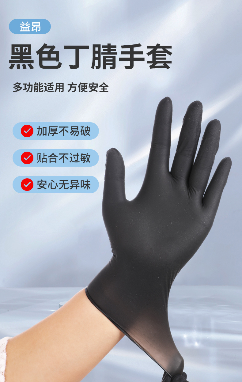 クロスボーダー使い捨てニトリル手袋希音temu代発丁晴黒色高弾英語複合ニトリル手袋