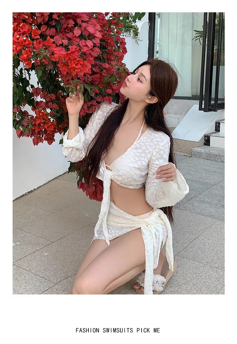 【ミントマンボ】春夏新作セパレート水着三点セット白遮肉温泉ビーチリゾート純欲風