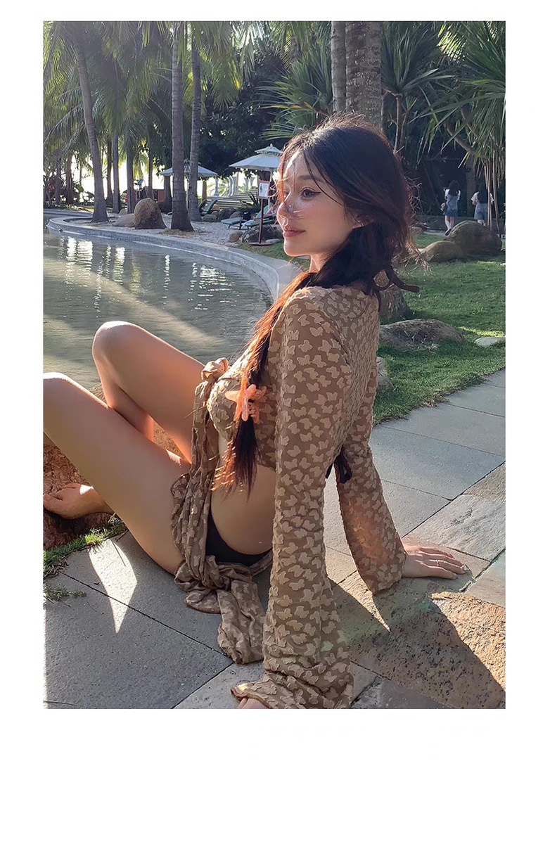 泳衣女2025新款韩版比基尼泰国甜心辣妹度假风泳衣女显瘦长袖罩衫