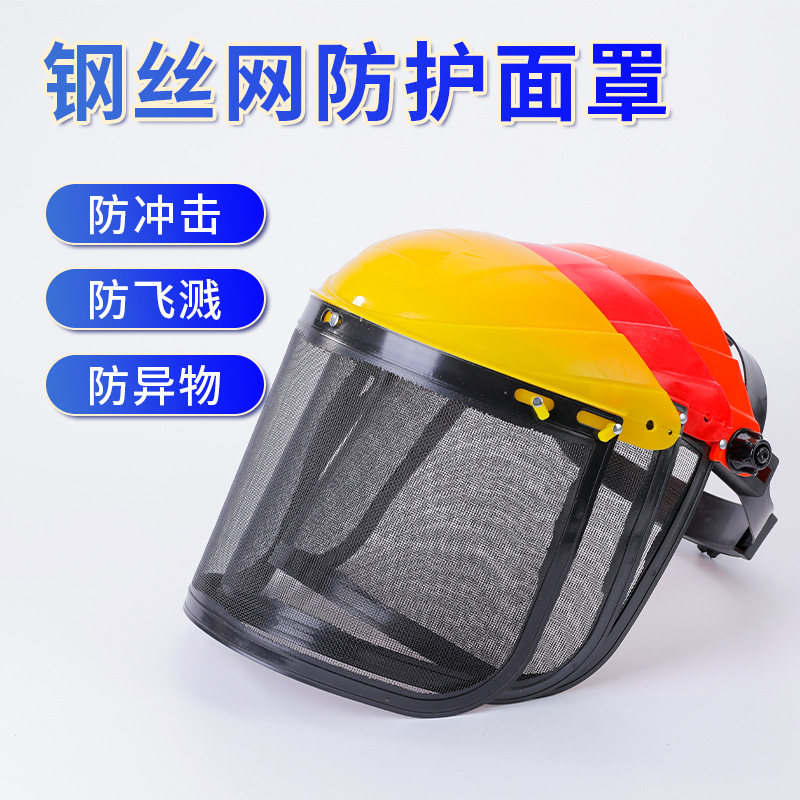 ヘッドマウント芝刈り機保護マスク鋼線メッシュ表面防爆耐衝撃スプラッシュフェイススクリーンガーデン芝刈りキャップスペシャル